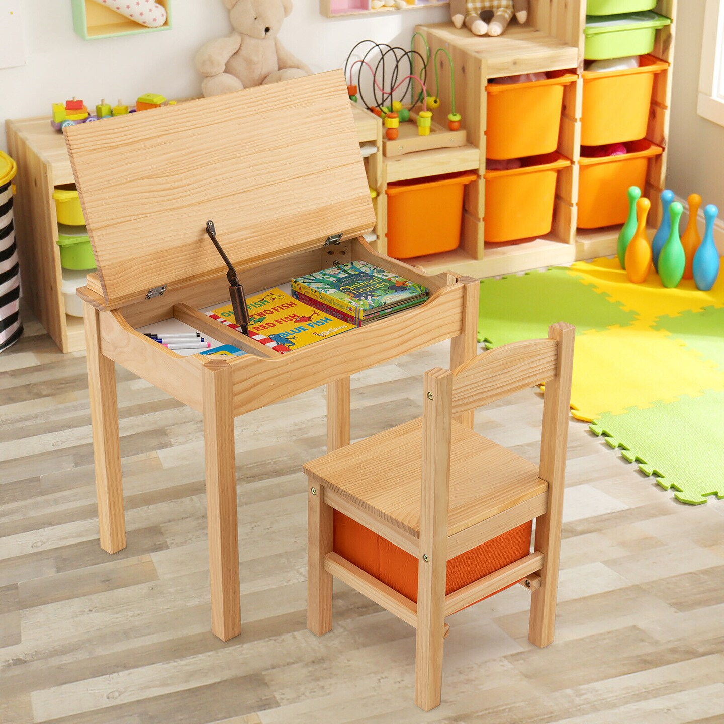 Wood Activity Kids Table and Chair Set with Flip Top Design and Pull-out Drawer