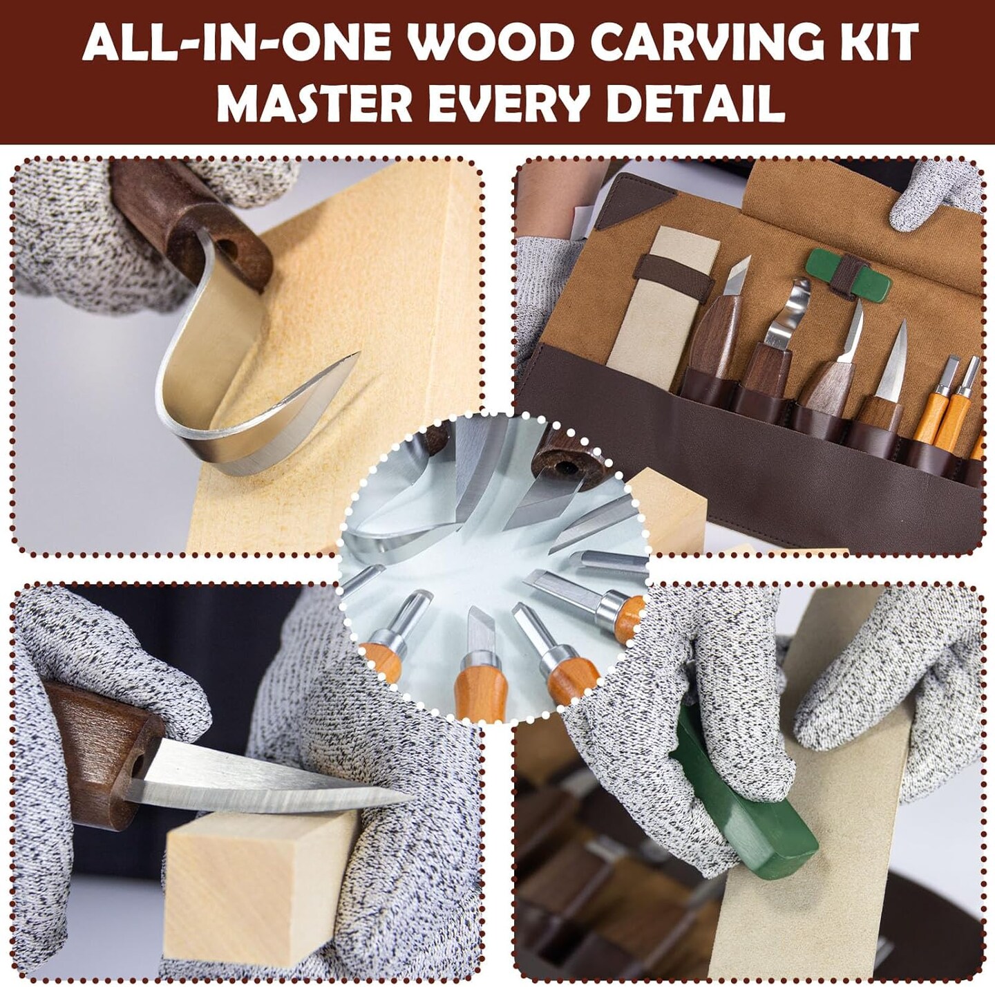 Wood Carving Kit for Adults & Beginners – 10-Piece Whittling Kit (4 Knives + 6 Chisels), 8 Basswood Blocks, Leather Holster, Wax & Instructions – Complete Woodworking & Craft Kit