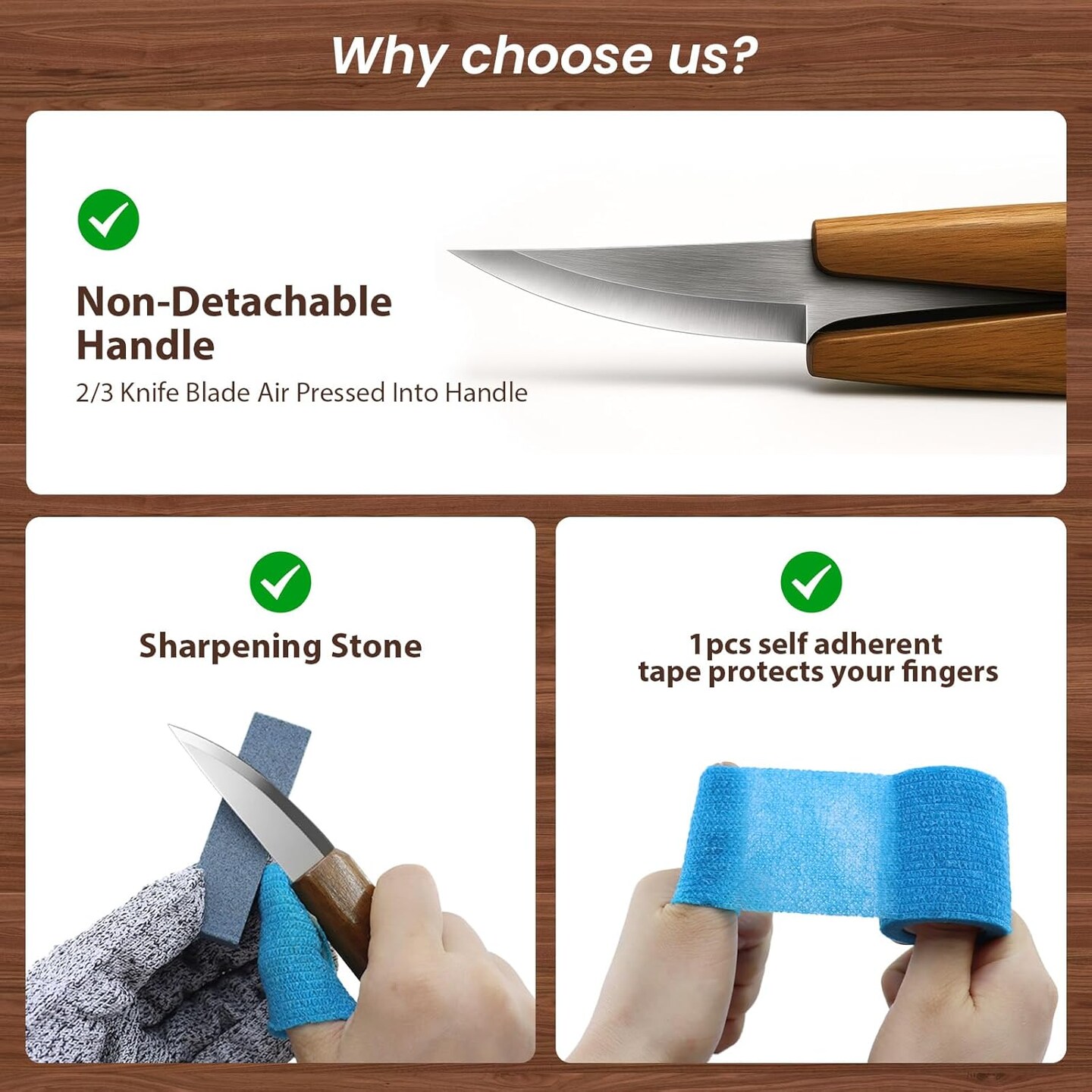 Wood Carving Knife for Beginners – Whittling Knife with Walnut Handle & Leather Sheath for Adults, Professionals & Woodworking Enthusiasts (Brown)