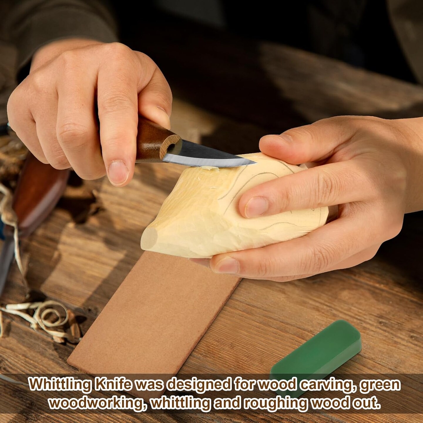 Wood Carving Knife With Leather Strop and Polishing Compound