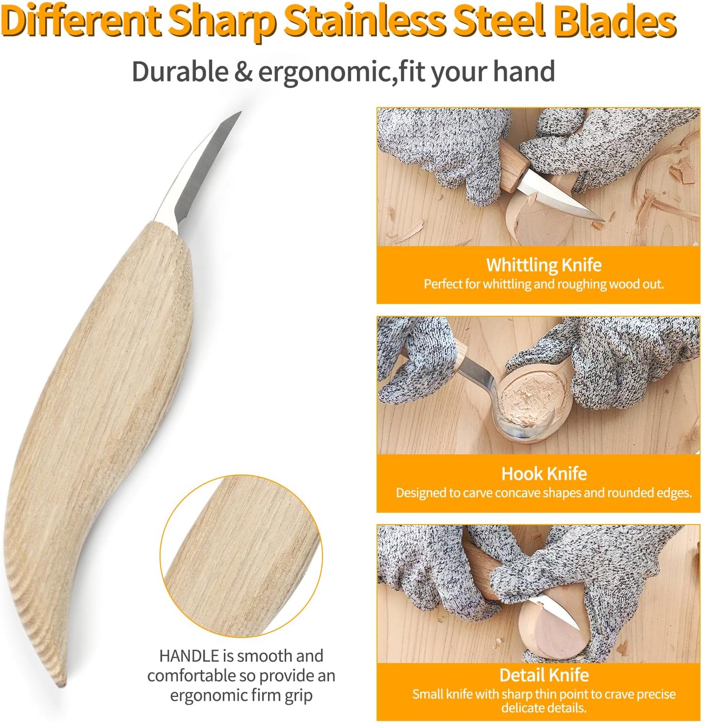 Wood Carving Tools Set - Wood Carving Knife Kit with Carving Hook Knife, Wood Whittling Knife, Detail Carving Knife, Whittling Kit for Kids Adults Woodworking DIY