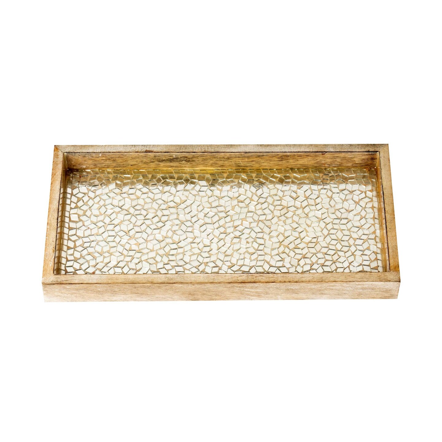 Wood & Glass Mosaic Vanity Tray, 12" | Silver Mosaic Finish