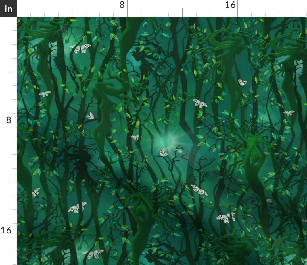 Wood Green Leaves Butterflies Forest Trees Fantasy Emerald Vines Nature Woodland Custom Printed Fabric by Spoonflower Various Fabrics by the Yard or Fat Quarter