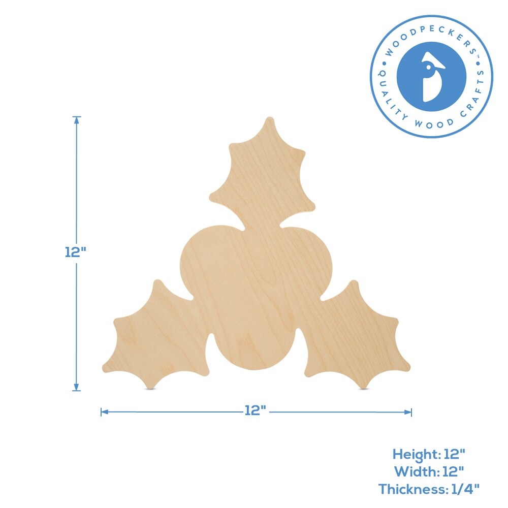 Wood Holly Cutout Ornaments, Multiple Sizes Available, DIY Christmas Tree Decor & Craft | Woodpeckers