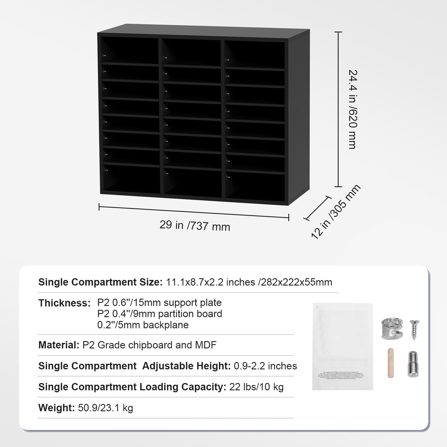 Wood Literature Organizer File Sorter with Removable Shelves Mailbox Slots for Office