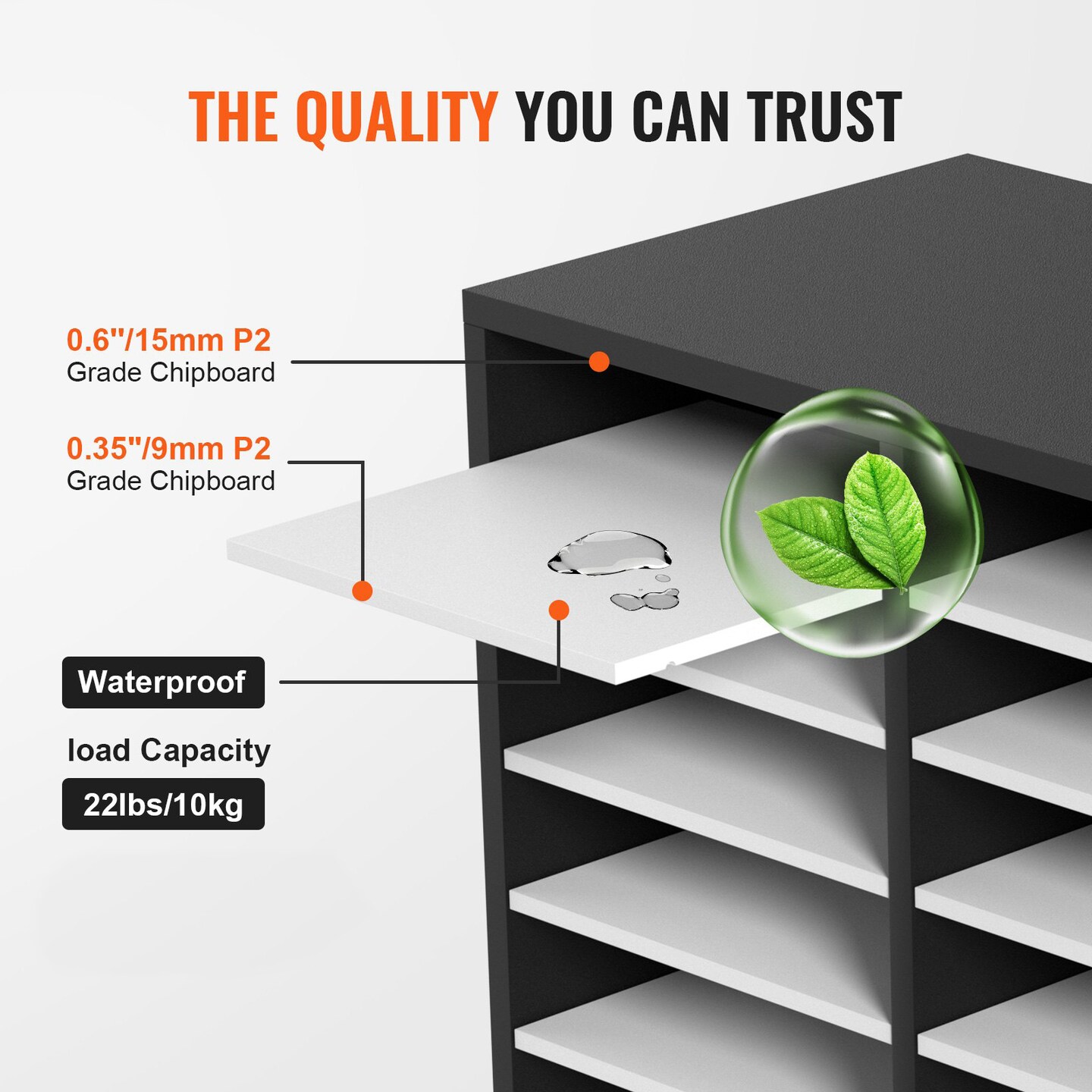Wood Literature Organizer File Sorter with Removable Shelves Mailbox Slots for Office