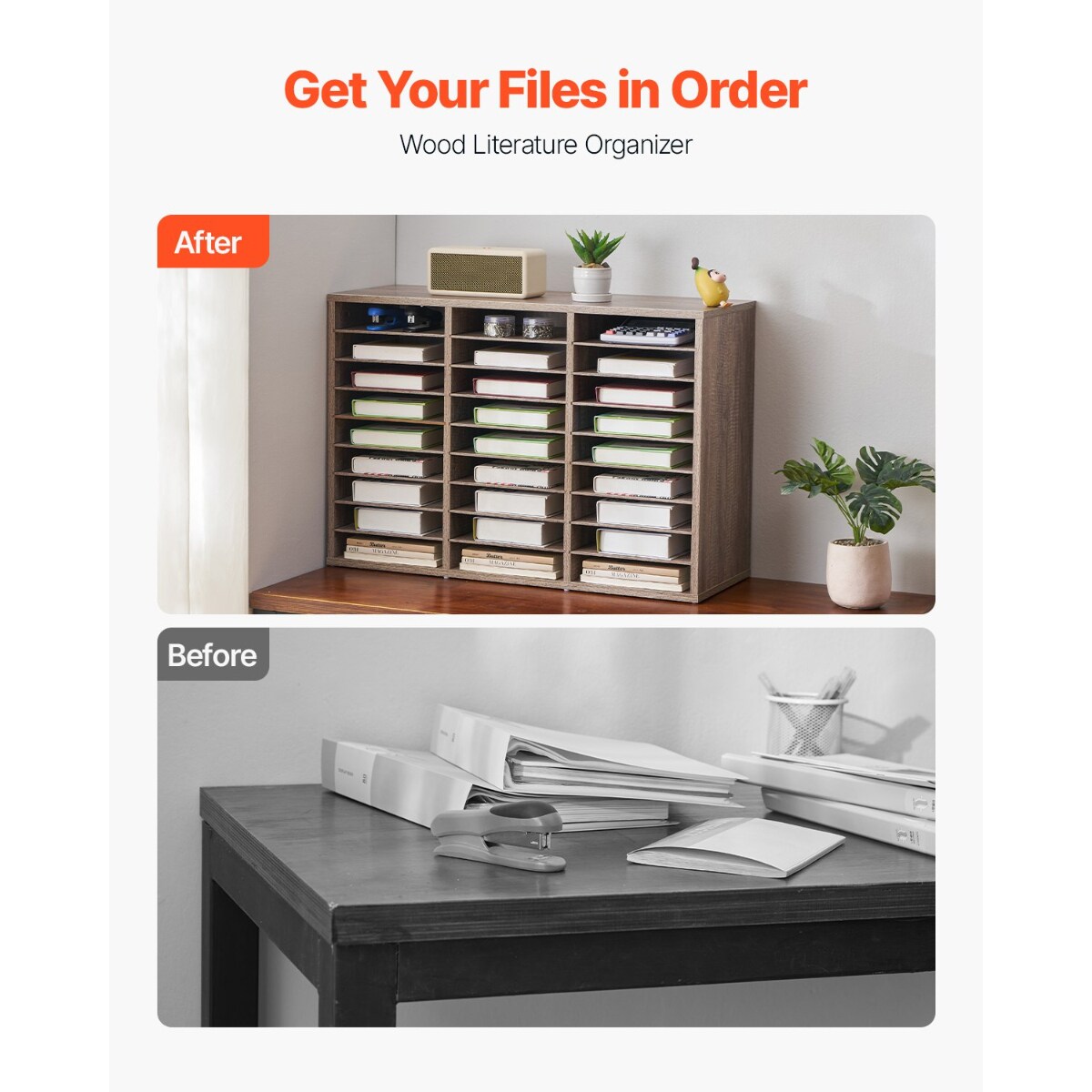 Wood Literature Organizer File Sorter with Removable Shelves Mailbox Slots for Office