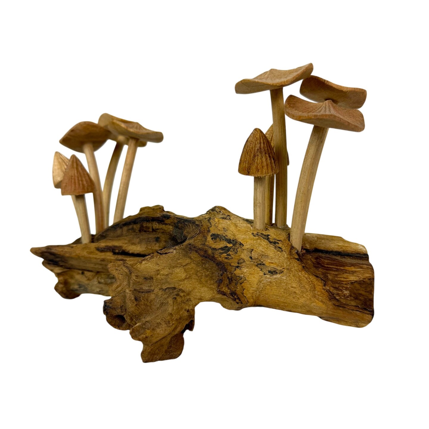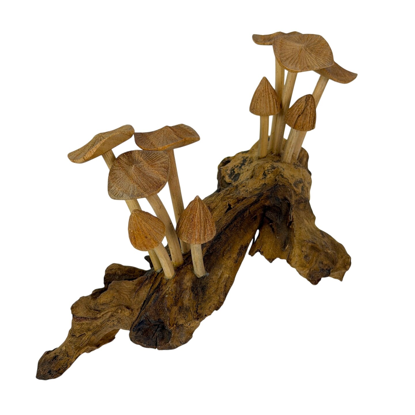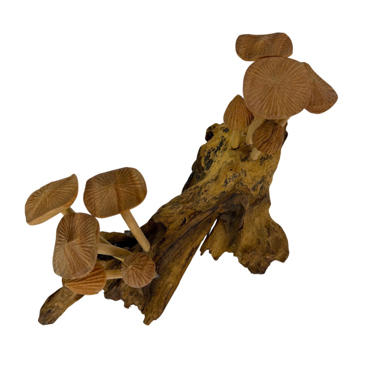 Wood Mushroom Sculpture Natural Tabletop Figurine Root Base Decor