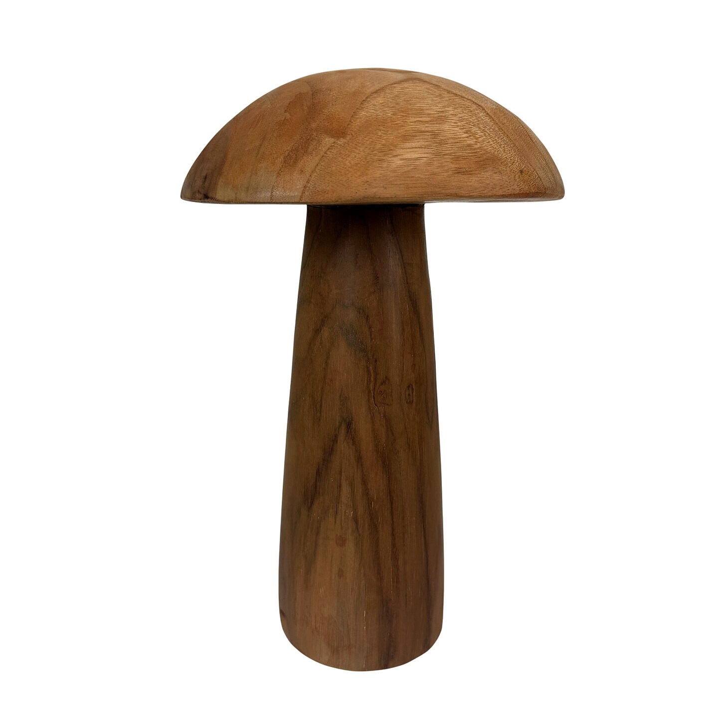 Wood Mushroom Statue 12.5 in Natural Solid Wood Freestanding Sculpture