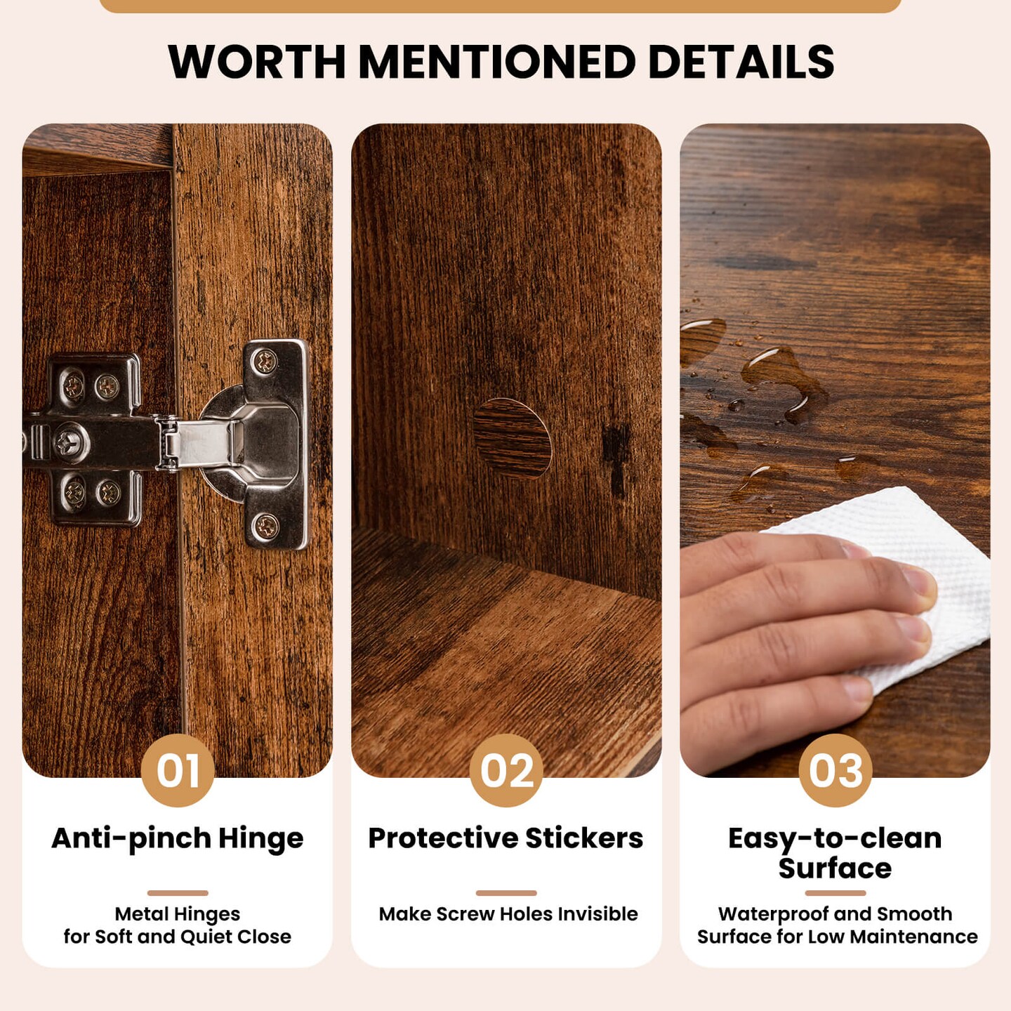 Wood Storage Cabinet with Wheels and 6 Compartments