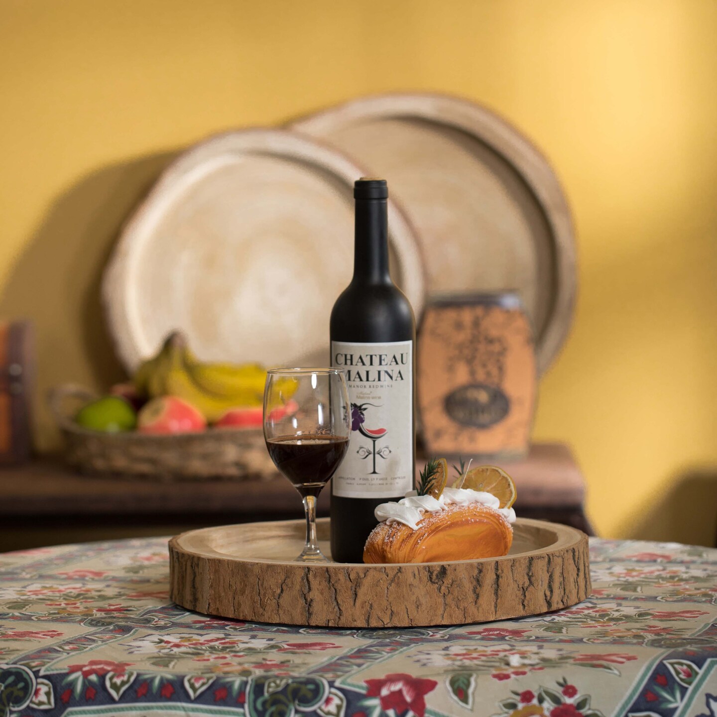 Wood Tree Bark Indented Display Tray Serving Plate Platter Charger
