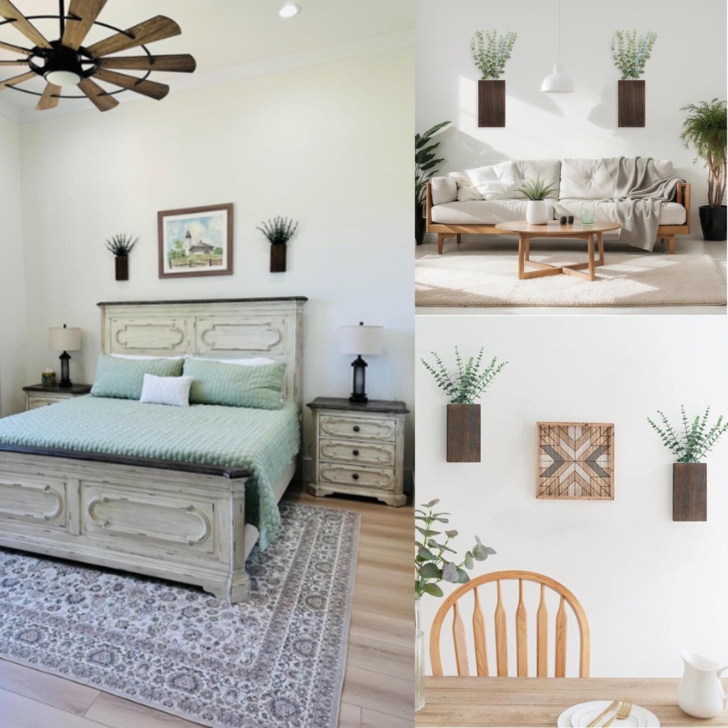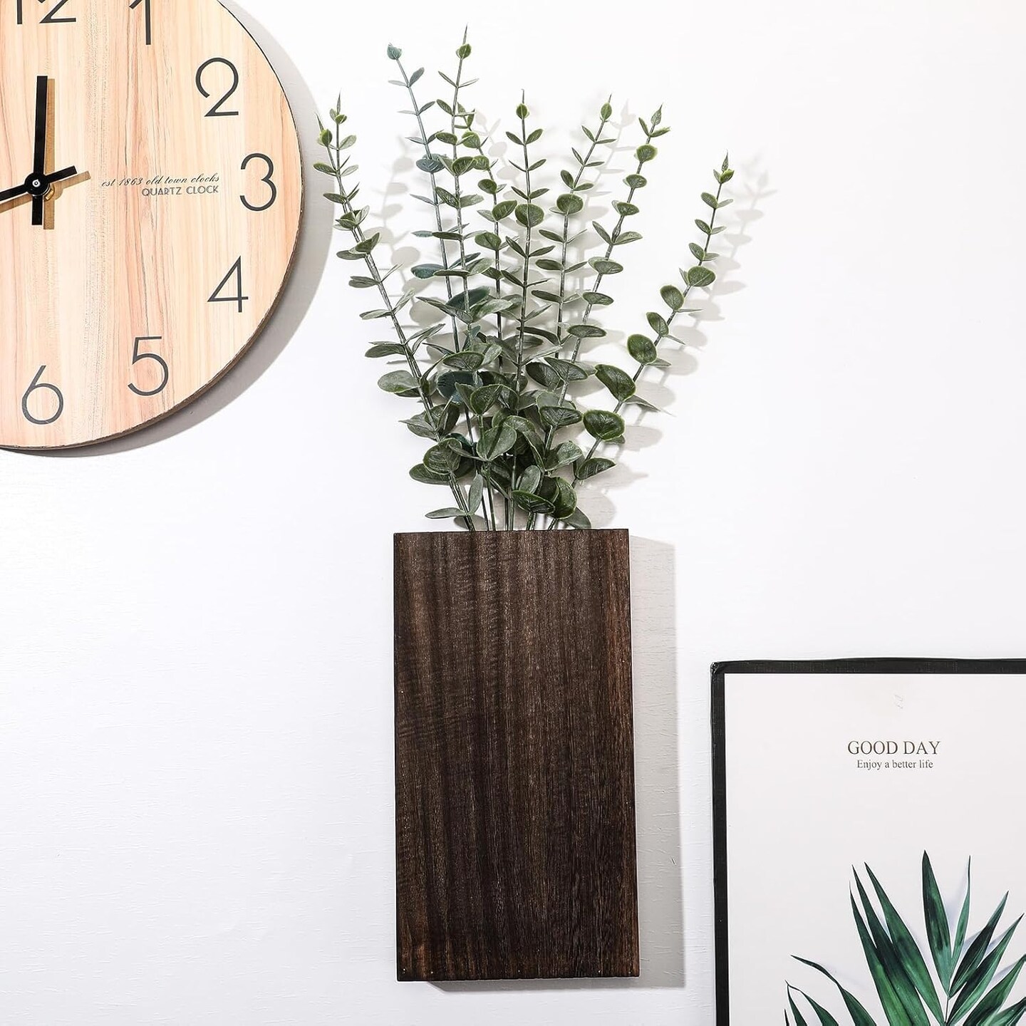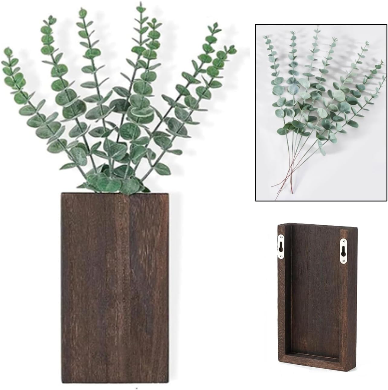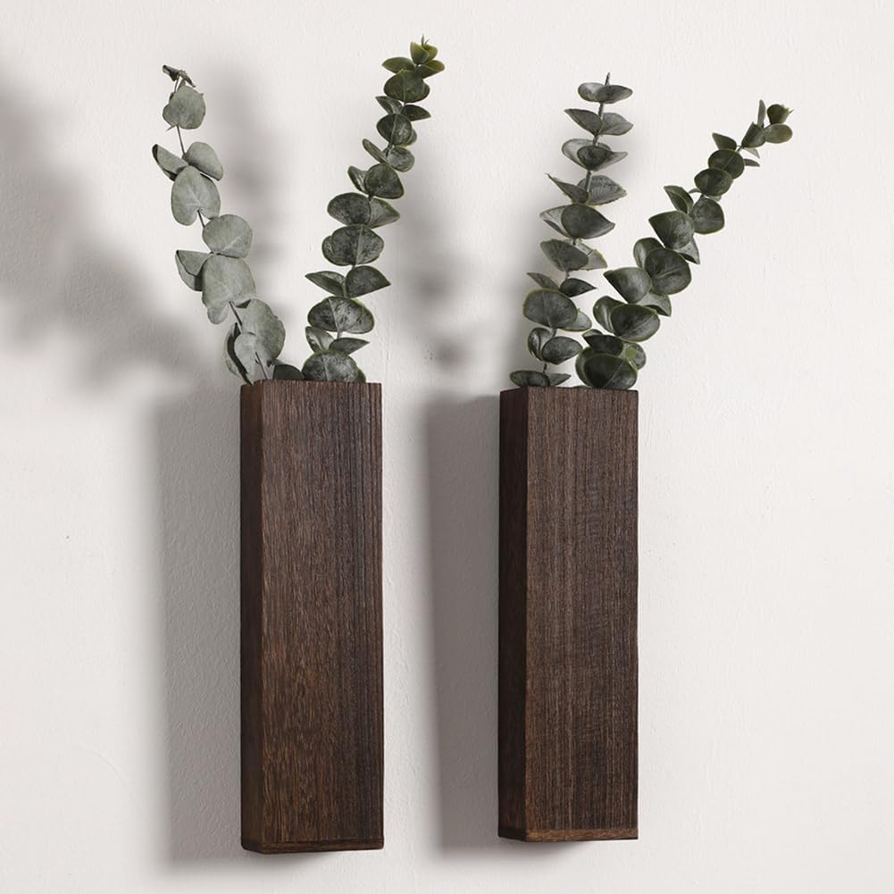 Wood Wall Decor 2 Pack Planter Vase with Artificial Eucalyptus (5.1"D x 1.4"W x 9.4"H)
