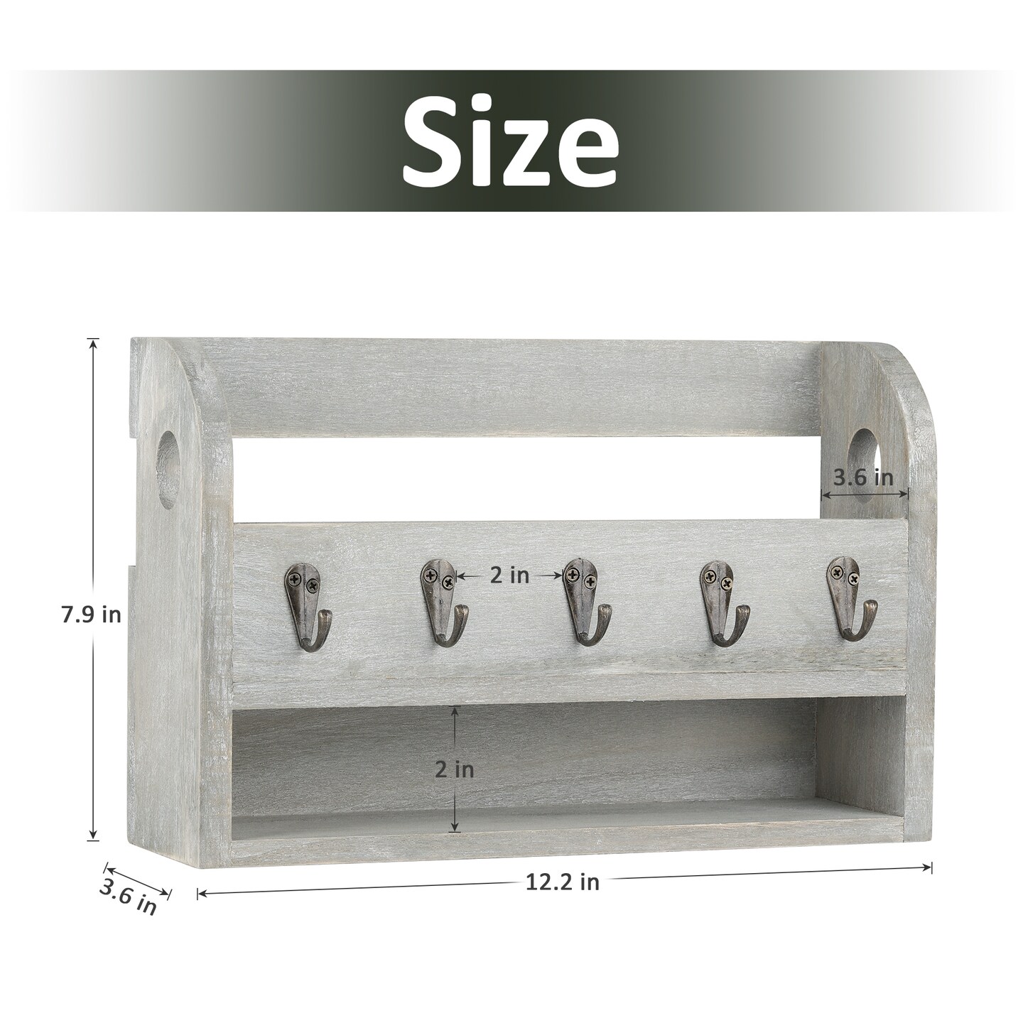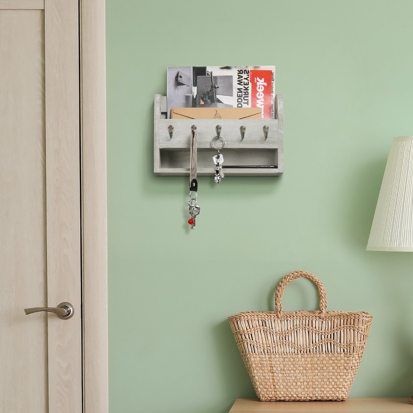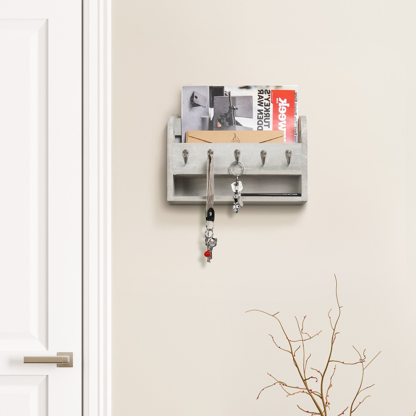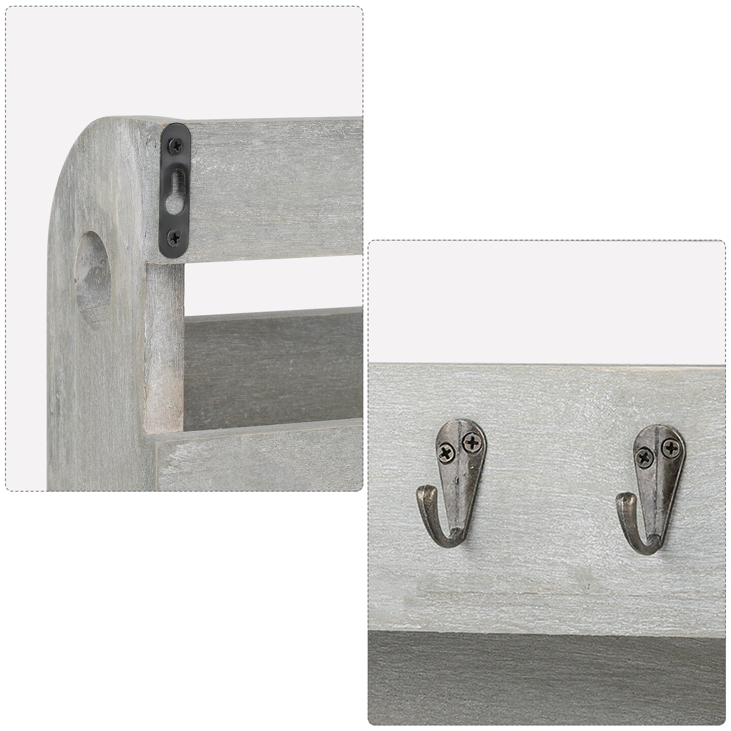 Wood Wall Mounted Mail and Key Holder Organizer, Rustic Gray