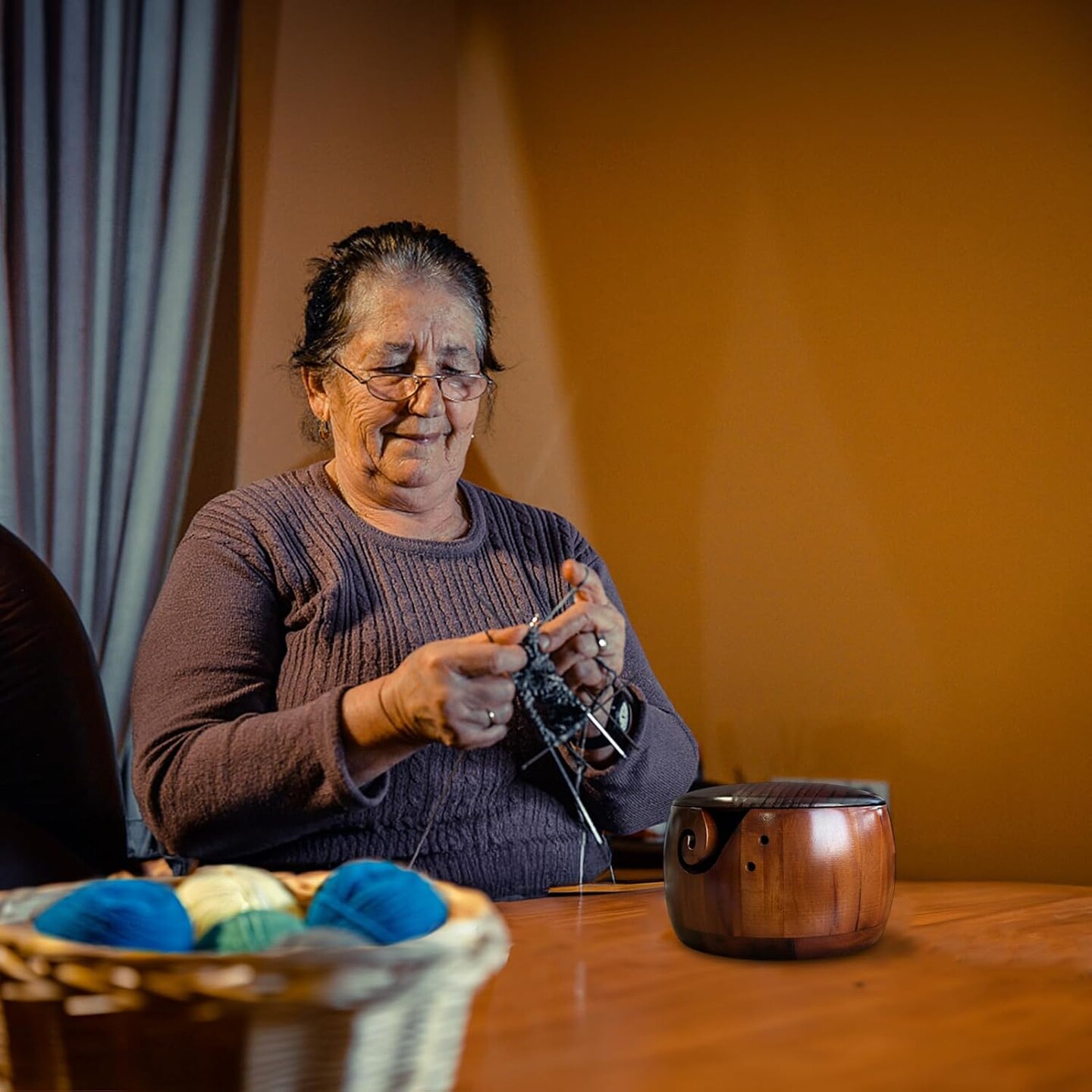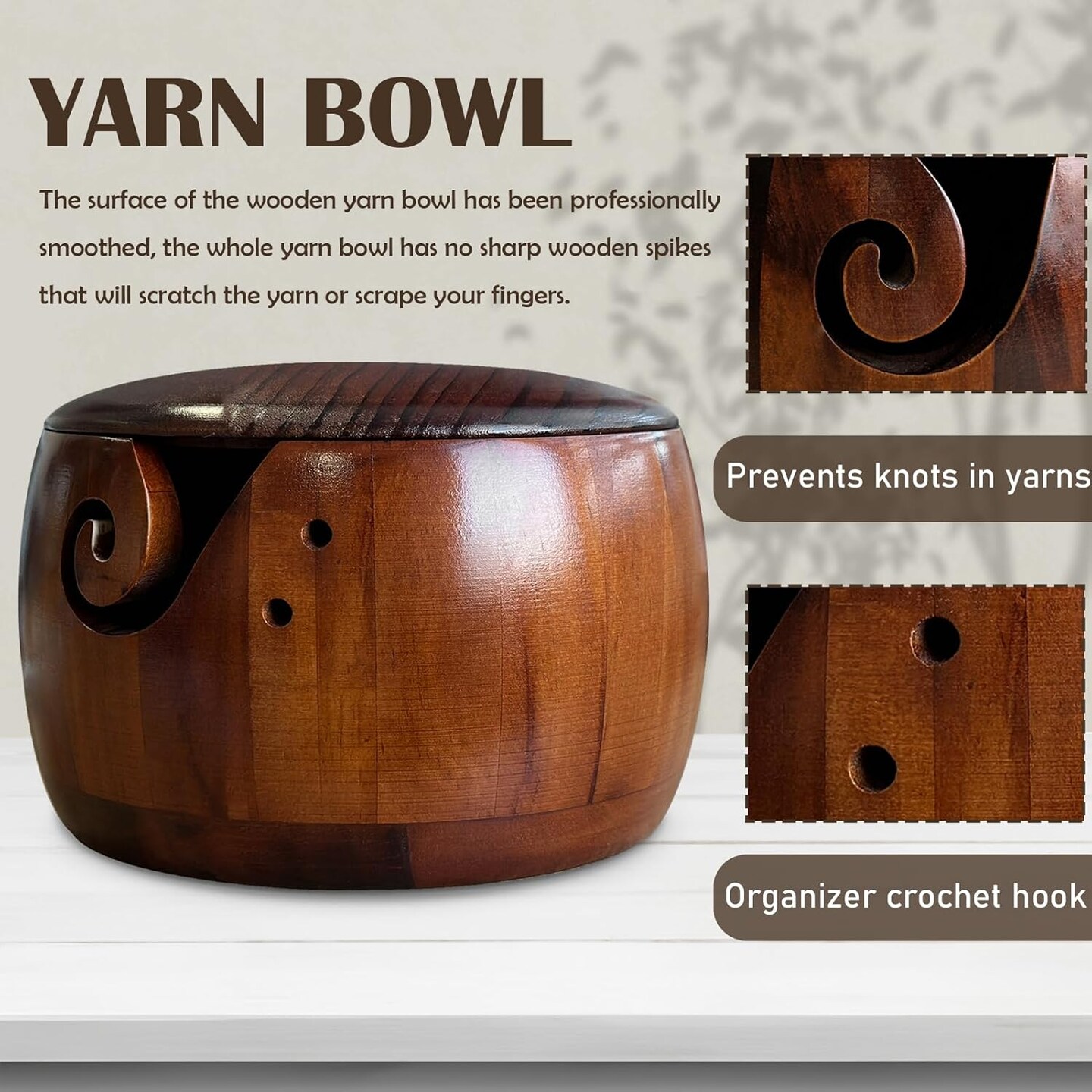 Wood Yarn Bowl with Lid, Crochet Bowls for Yarn,Knitting Yarn Bowl (7X4in)