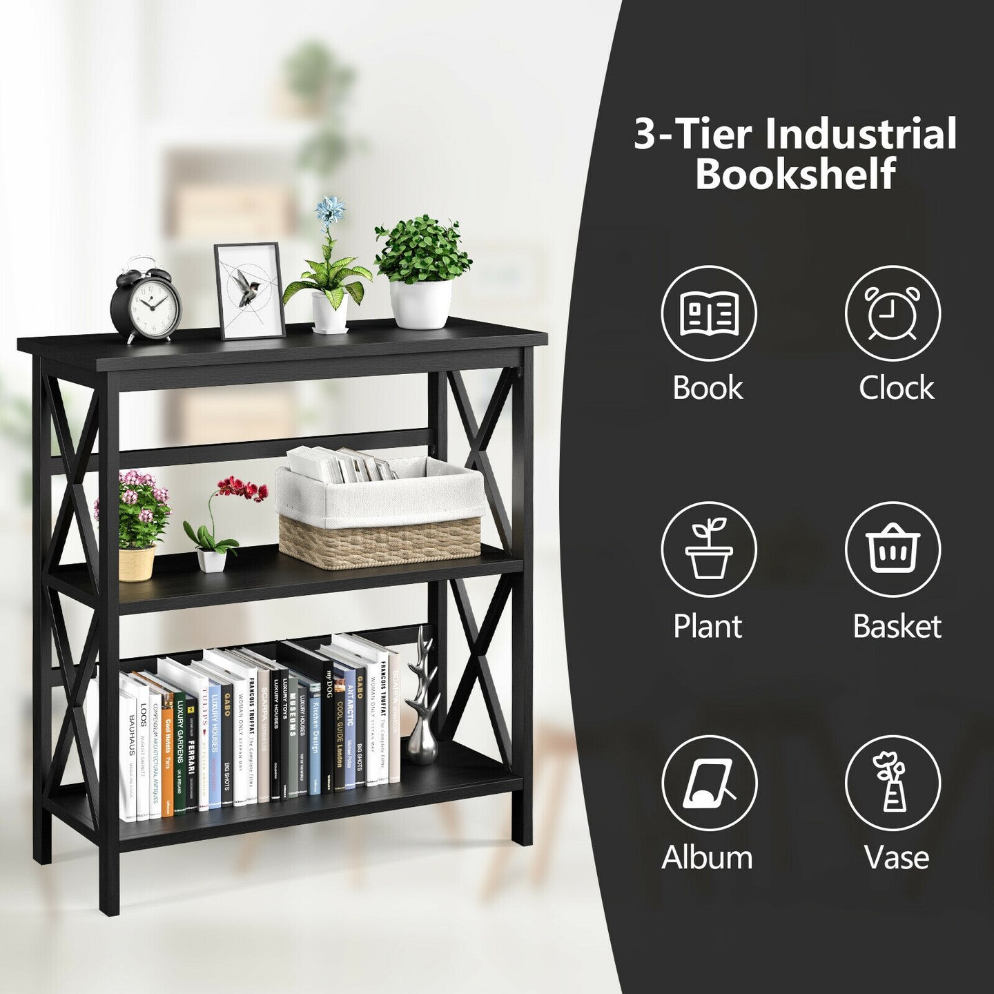Wooden 3-Tier Bookshelf with Open Storage Design