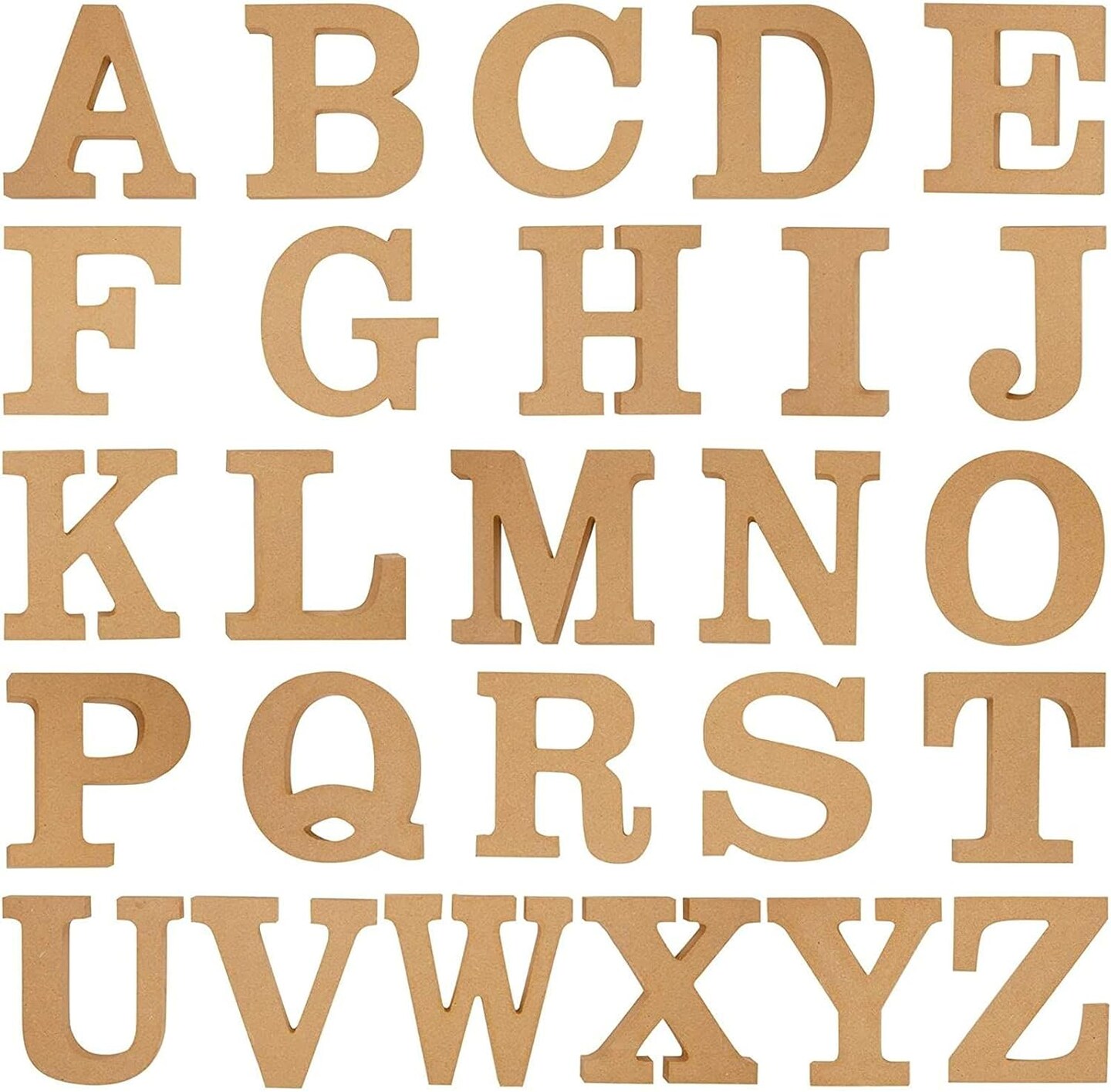 Wooden Alphabet Letters for DIY Crafts, 3D Letters for Home Wall Decor (4 in, 2 of Each Letter, 52 Pieces)