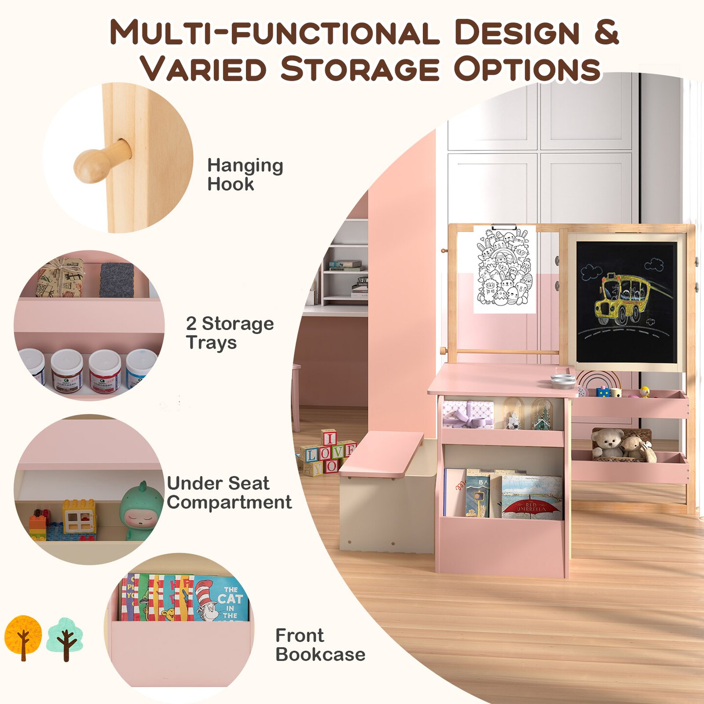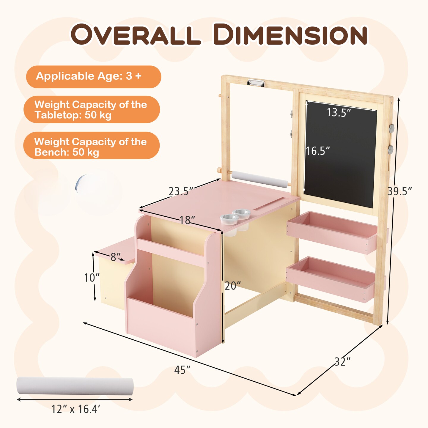 Wooden Art Center Table and Bench Set for Kids