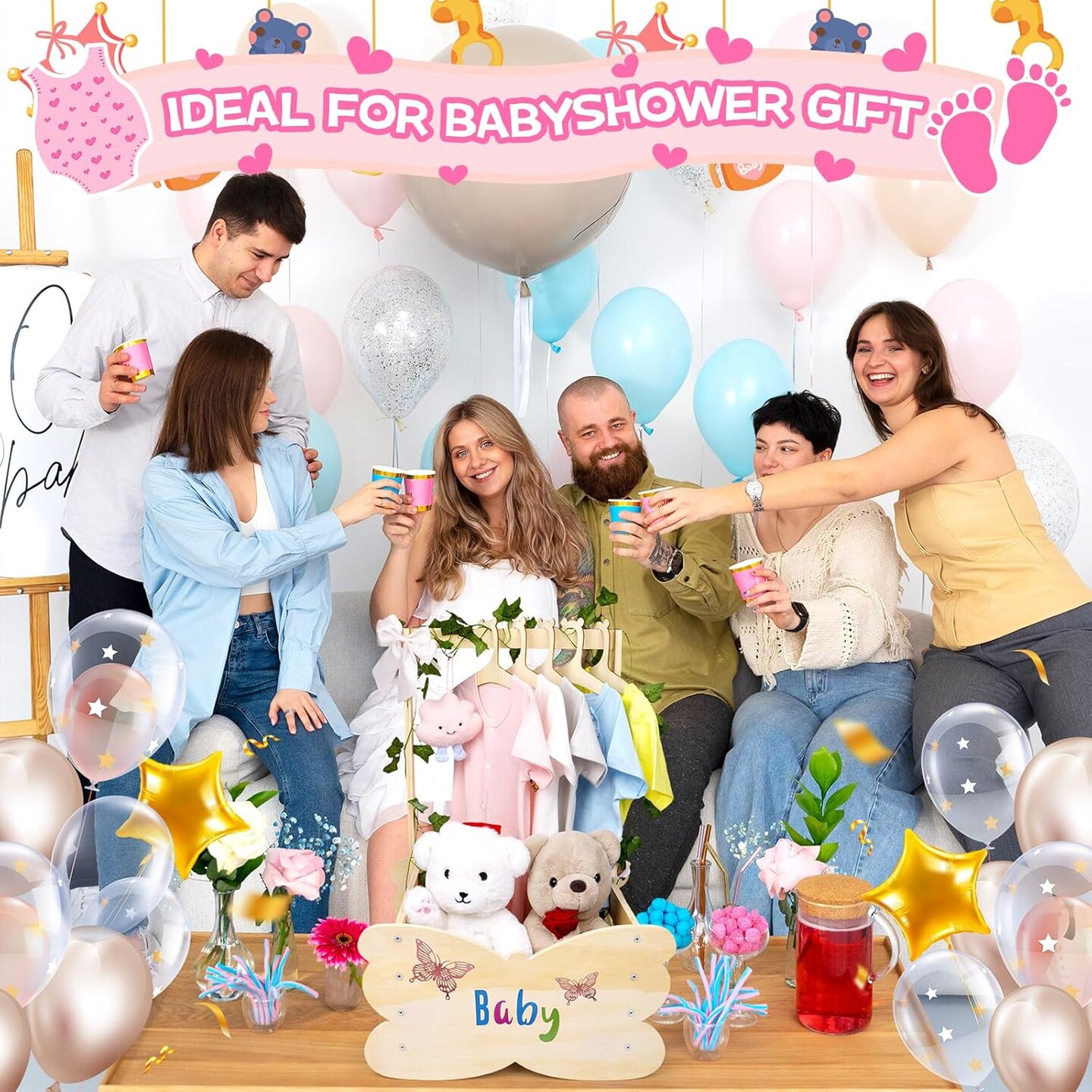 Wooden Baby Shower Crate Closet, Baby Shower Basket with Handle Hangers Butterfly Decoration Personalized Wooden Crate Boys Girls Gifts