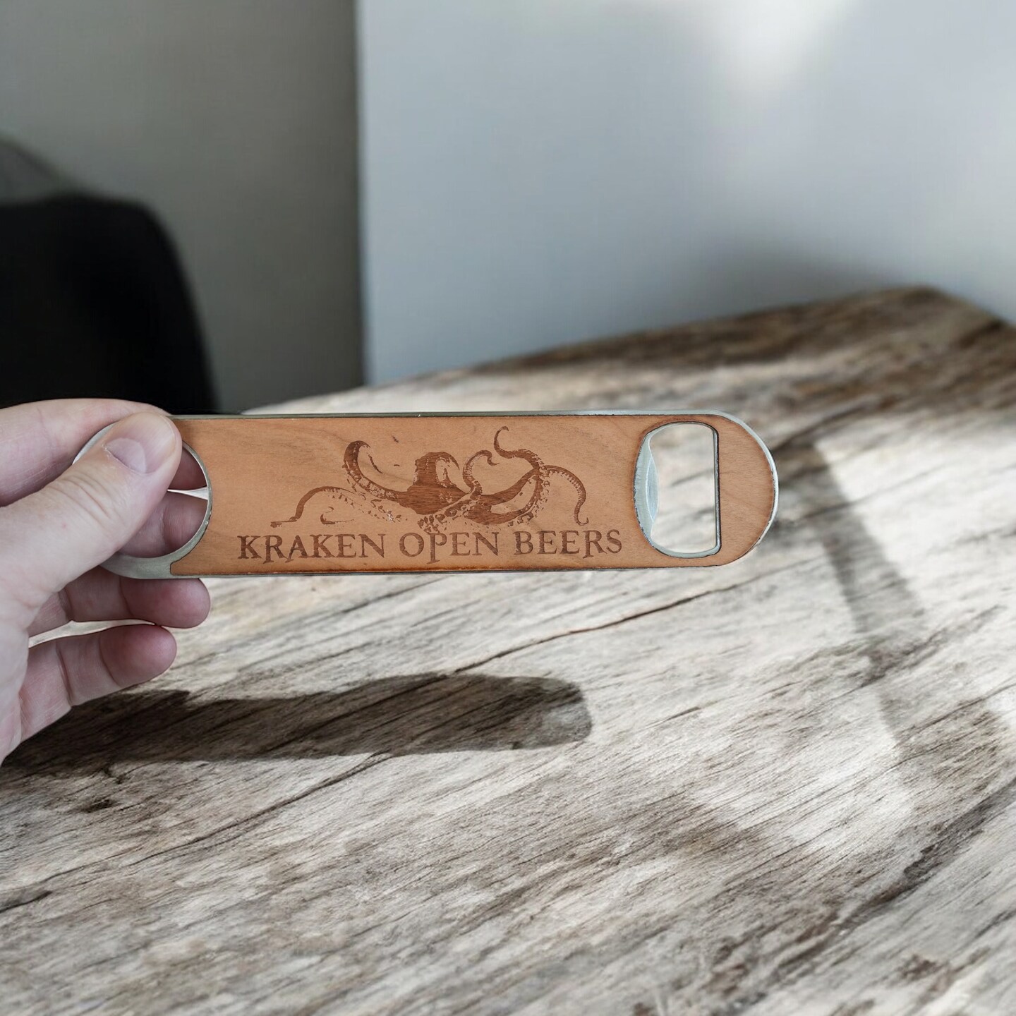 Wooden Bottle Opener - Kraken open beers