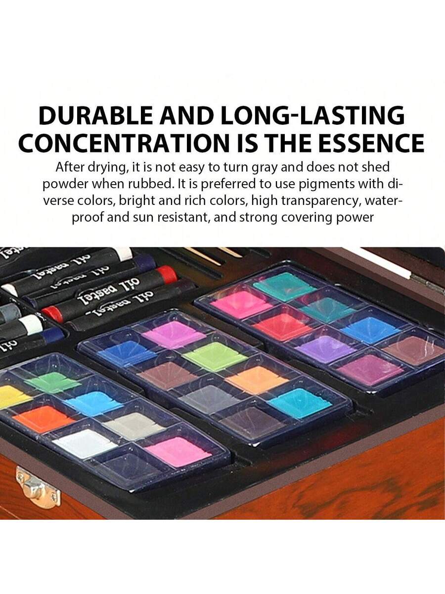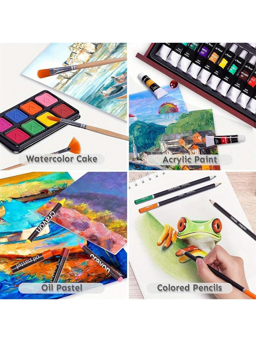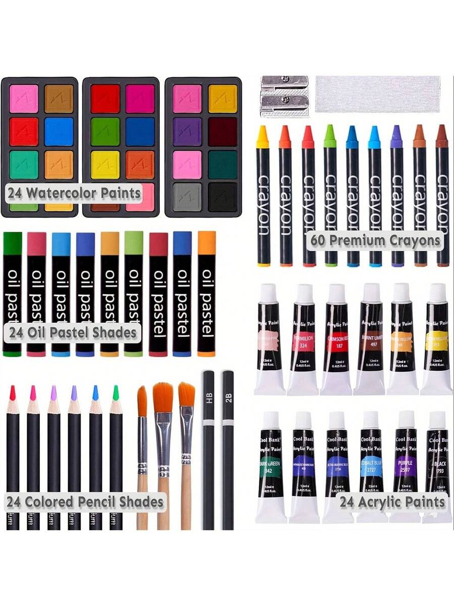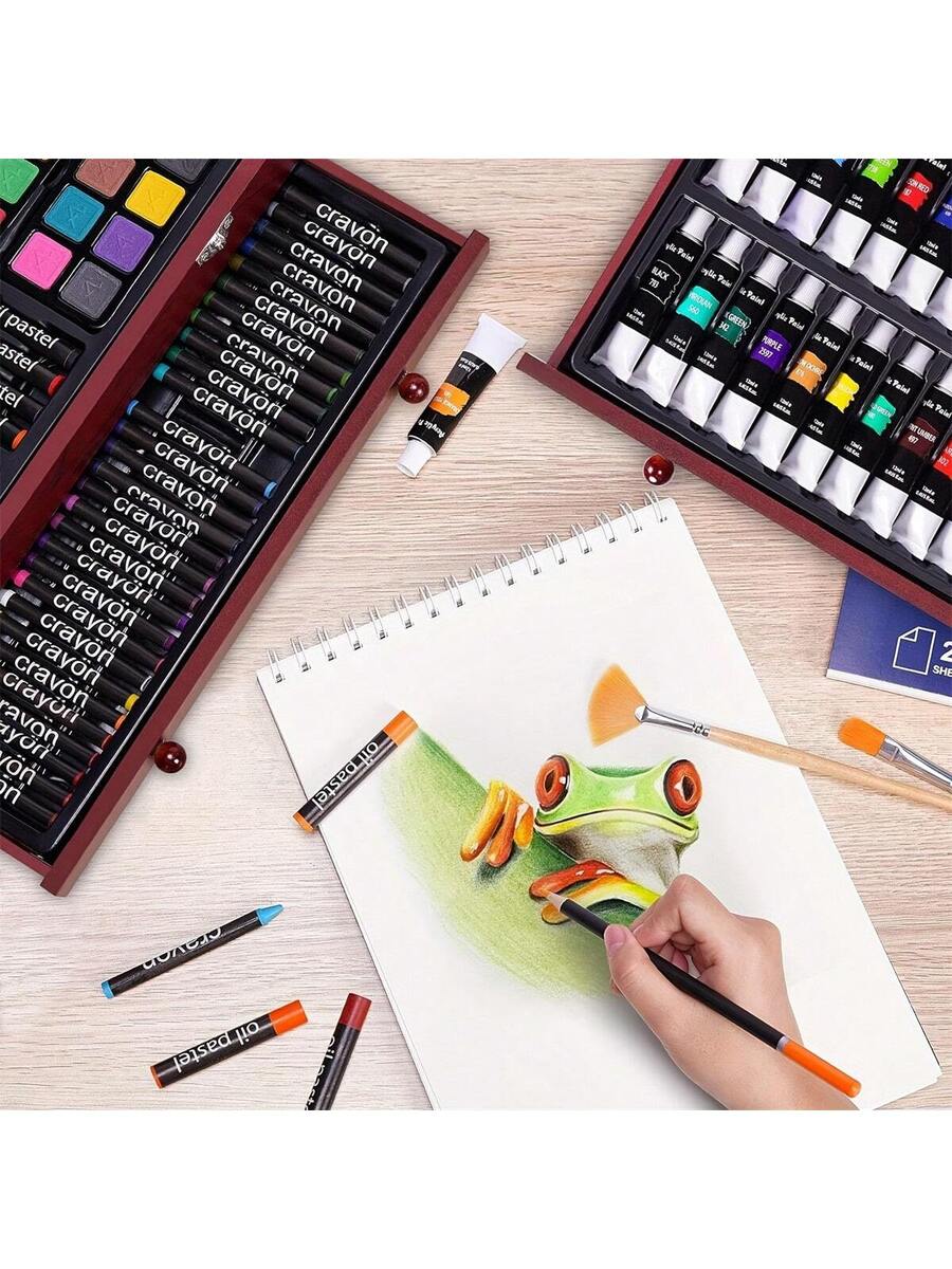 Wooden Box Painting Set 140pcs Deluxe Art Set with Crayons, Acrylic Paints, Colored Pencils