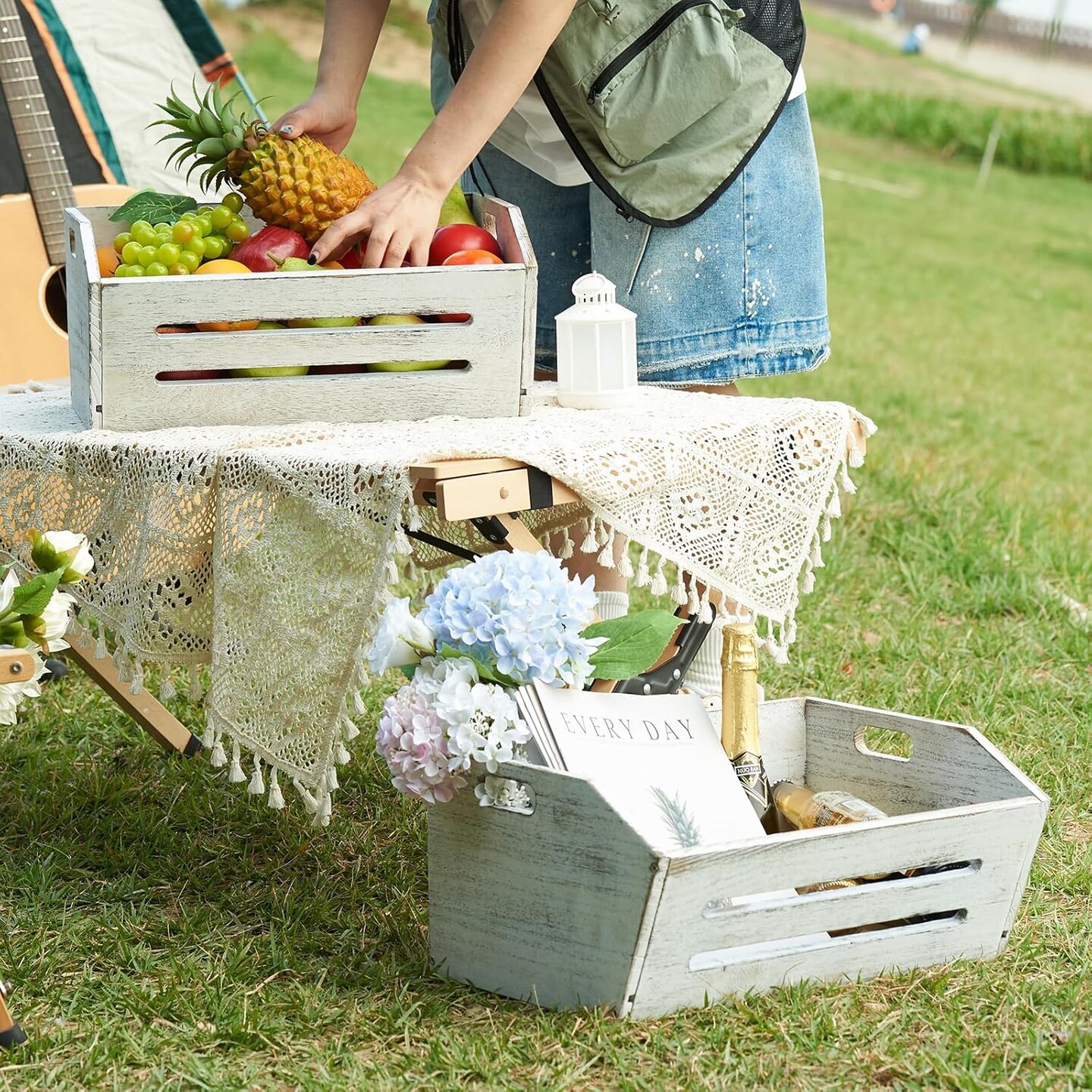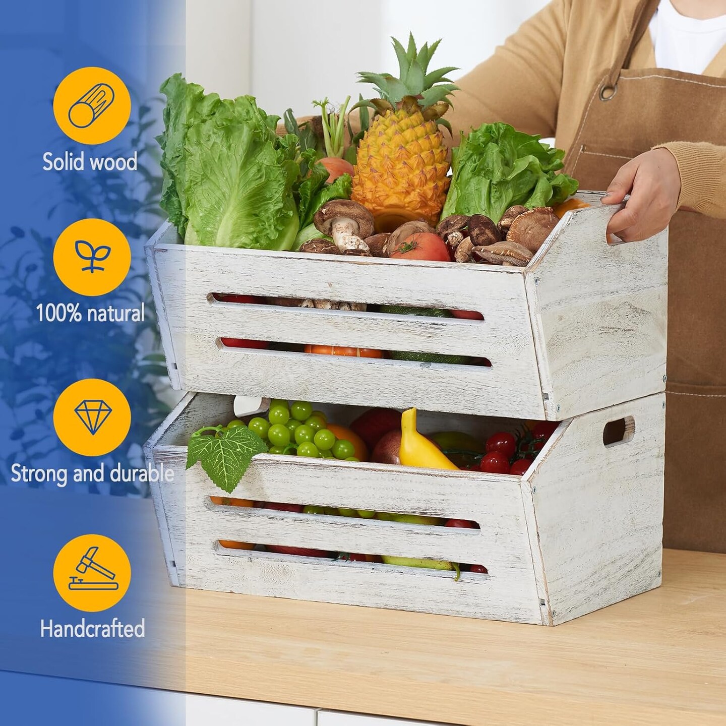 Wooden Crate, 2 Pack Fast Assemble Wooden Crate for Storage, Decorative Farmhouse Wooden Crate Basket, Vintage Wood Crates Display for Fruits and Vegetables