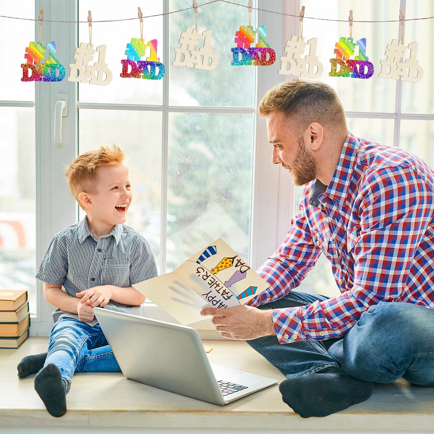 Wooden DAD Ornaments to Paint Father's Day Birthday Party Decoration Cutouts Unfinished 24PCS 3.5 x 3 inches, DIY Blank Unfinished Wood Daddy Ornament for Home Crafts Hanging Father Day Decoration