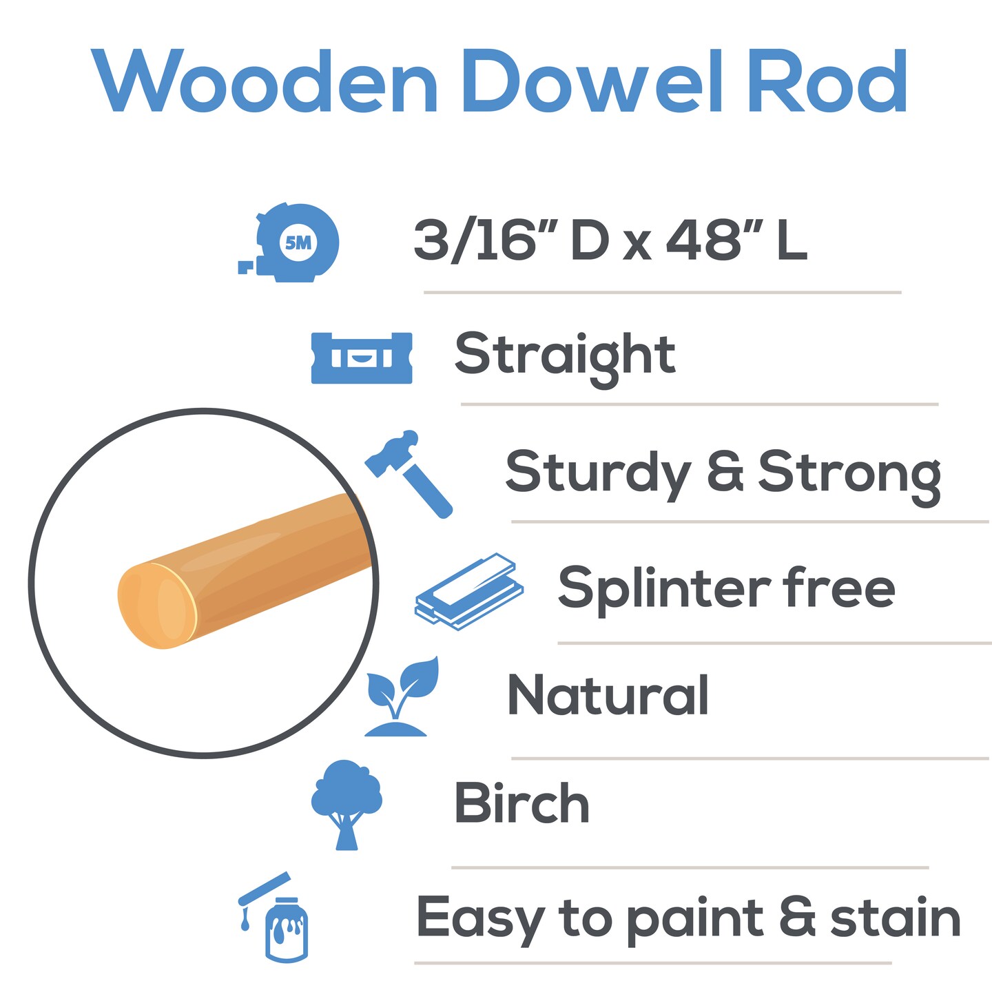 Wooden Dowel Rods 3/16 inch Thick, Multiple Lengths Available, Unfinished Sticks Crafts & DIY | Woodpeckers