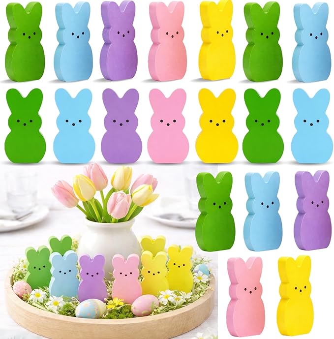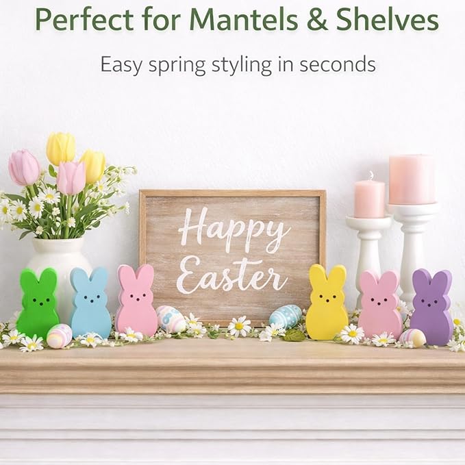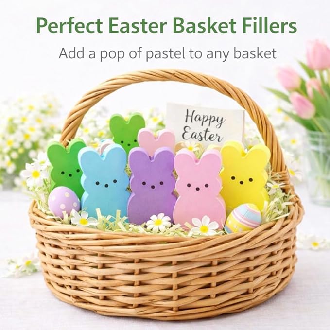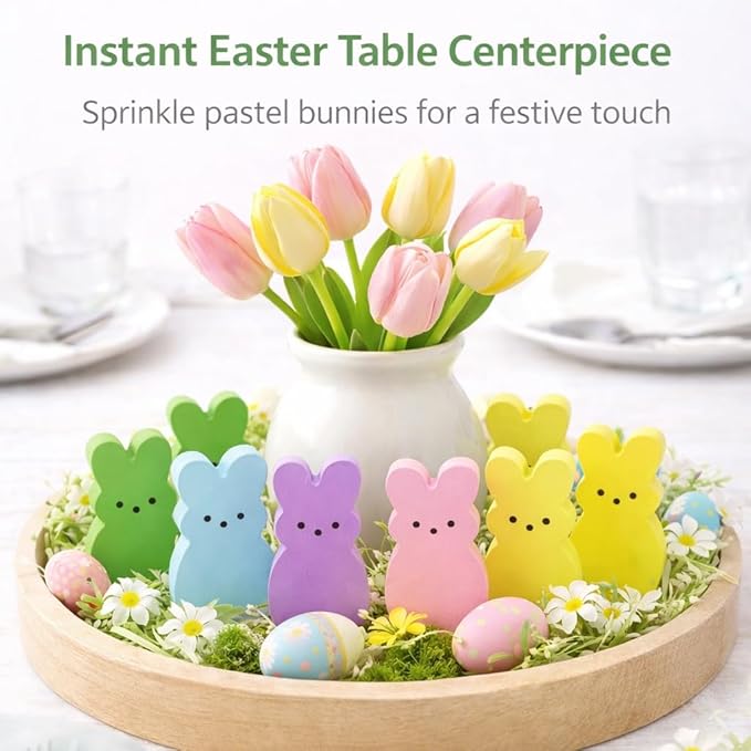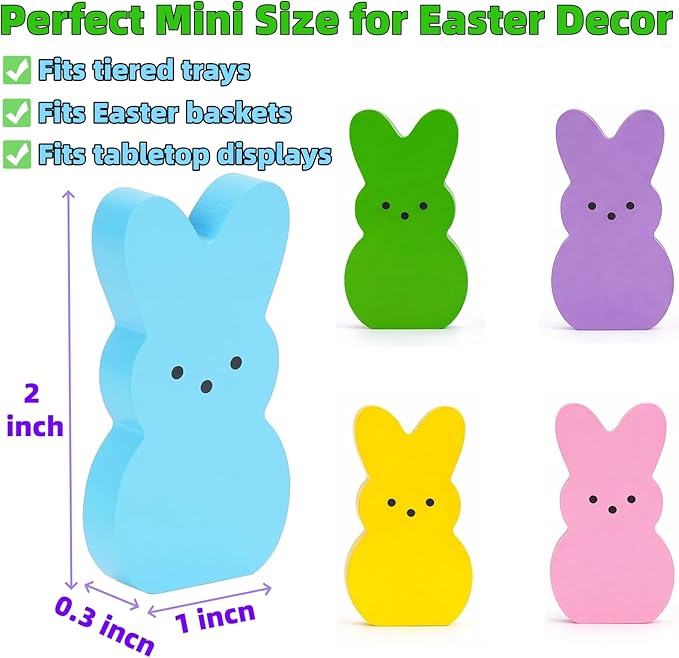Wooden Easter Decor, 30 Pcs Mini Bunny Set, Freestanding Tiered Tray & Easter Basket Fillers, Spring Table Centerpiece Mantel Shelf Decorations