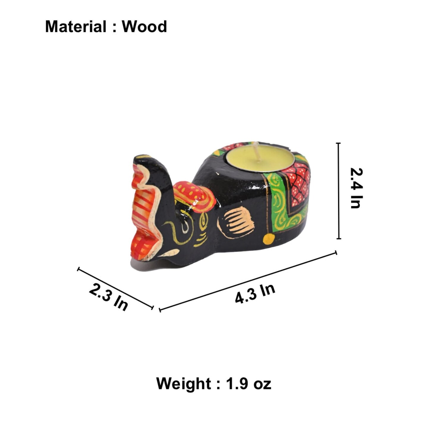 Wooden Elephant Tealight Candle Holder Handpainted Sitting Elephant T-light Table Top Decorative Showpiece Home Living Room Office Decor Indian Festival Housewarming Diwali Return Gifts