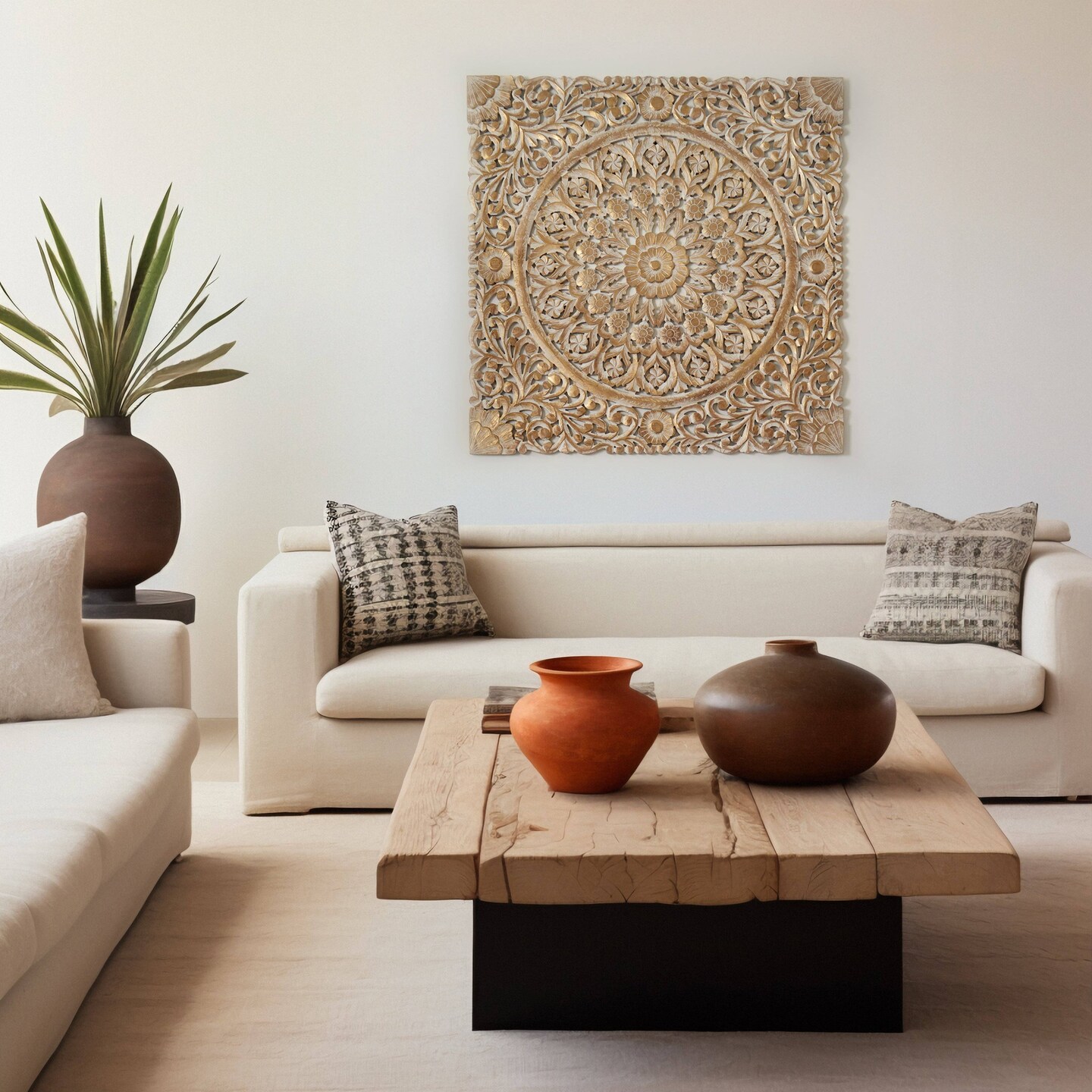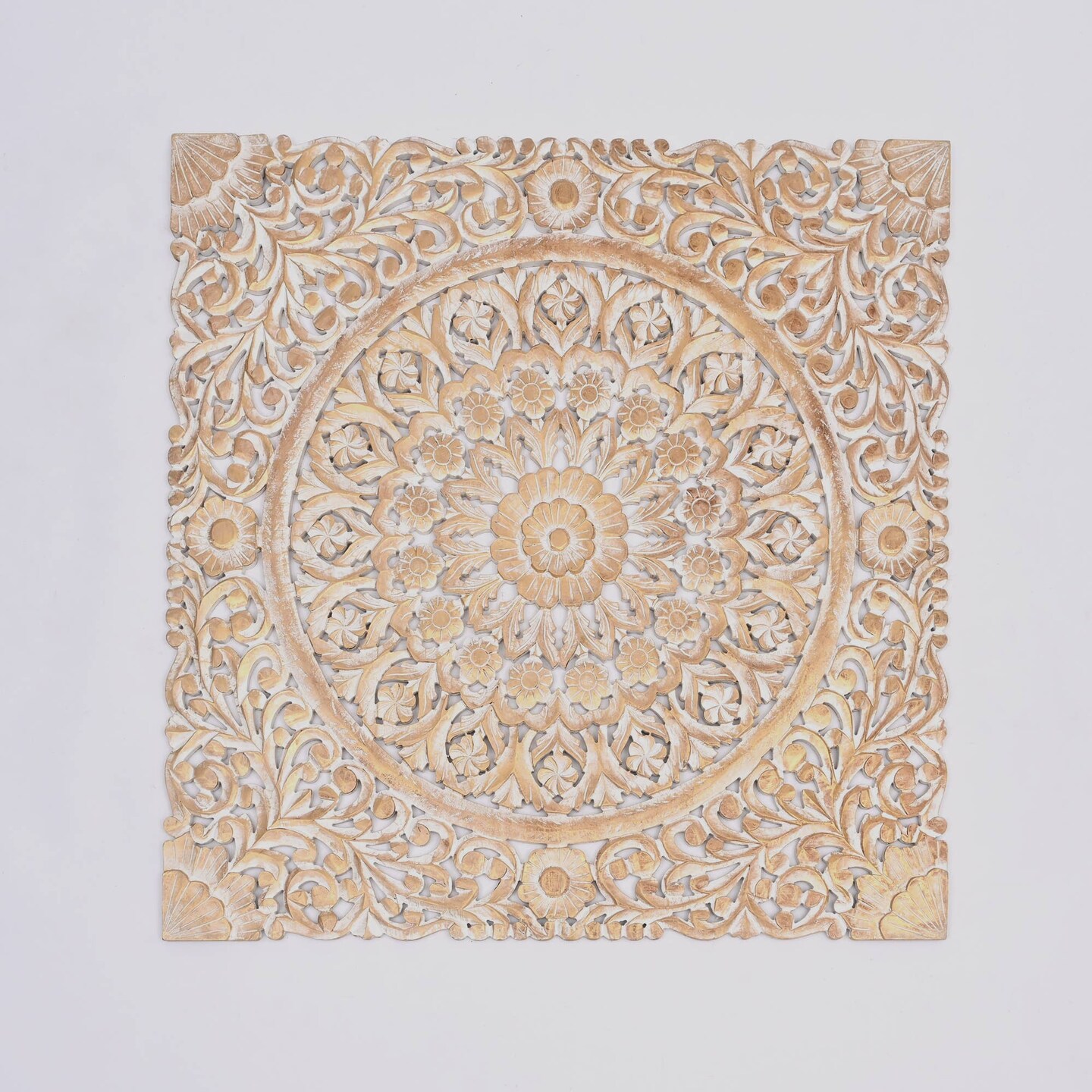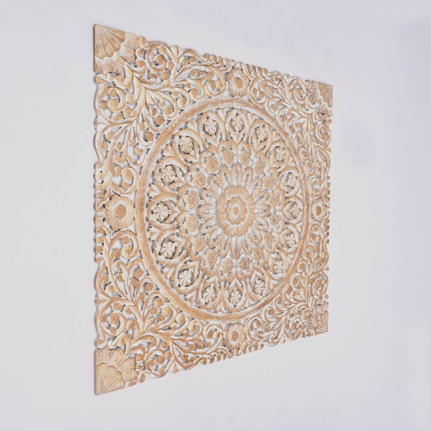Wooden Floral Hand Carved Mandala Square Wall Decor - 48" x 48"