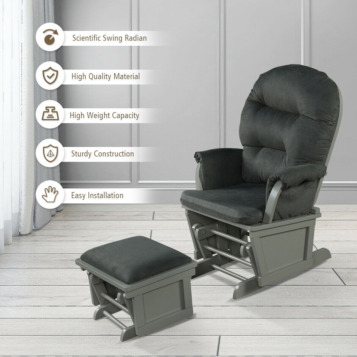 Wooden Glider and Ottoman Cushion Set with Padded Armrests for Nursing