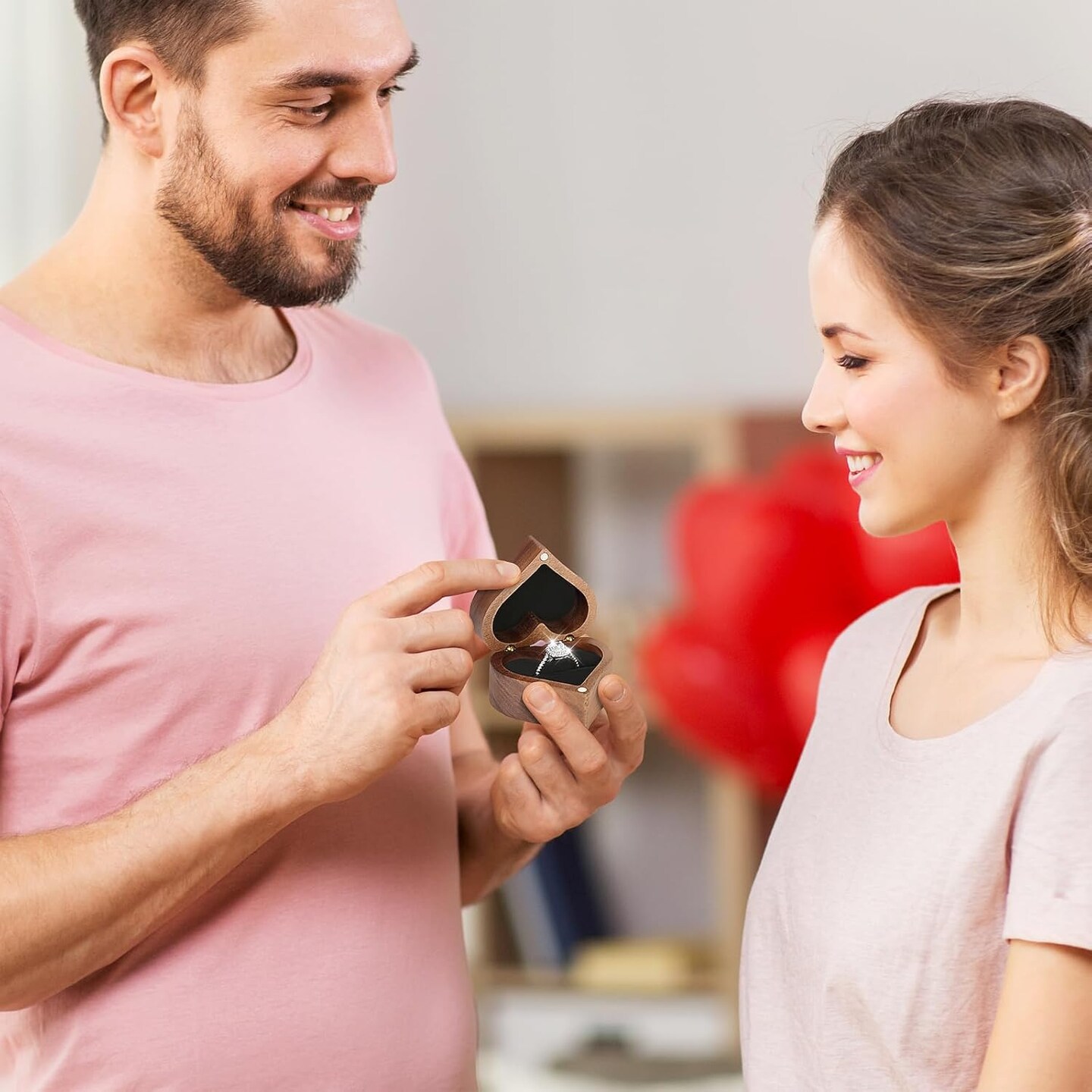 Wooden Heart Shape Ring Gift Box with Single Slot 2 Slot, Personalized Vintage Wood Jewelry Box for Proposal Engagement Wedding Ceremony Anniversary (Black-1 Slot)