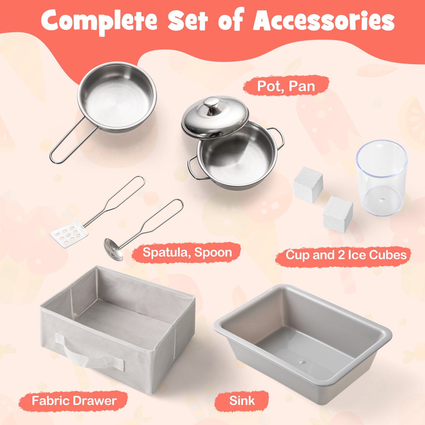 Wooden Kids Kitchen Playset with Chalkboard, Ice Maker, Sink & Lighted Microwave
