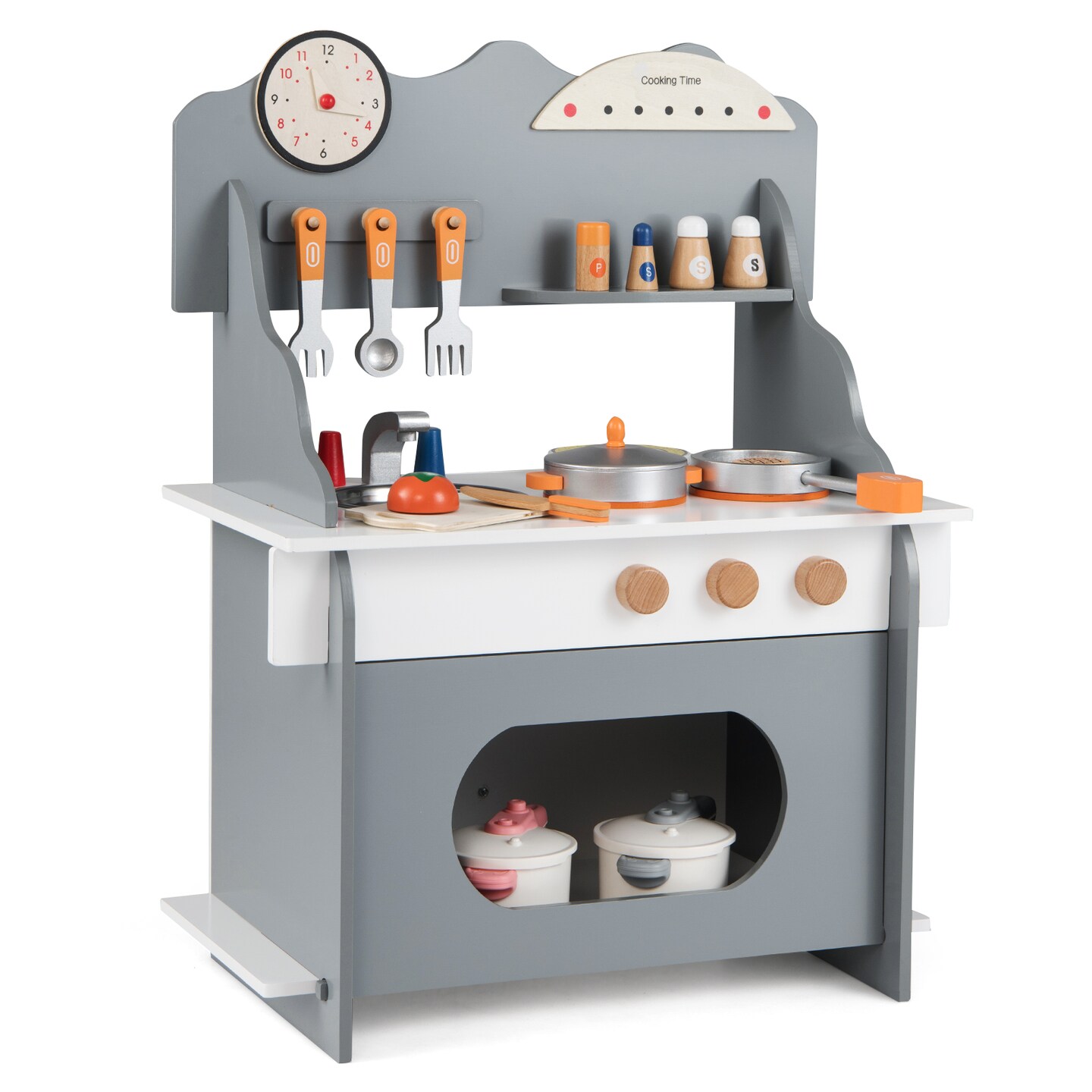 Wooden Kids Play Kitchen Set with Clock for Boys and Girls 3+
