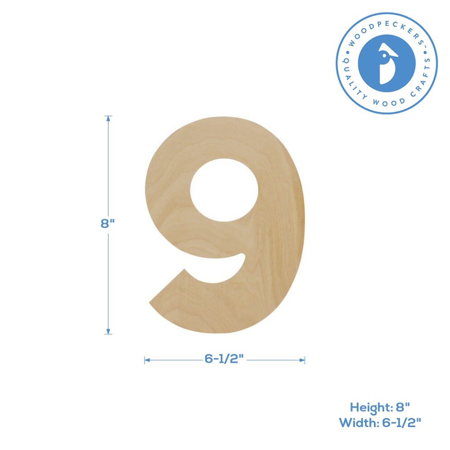 Wooden Number 9, 12 inch or 8 inch, Unfinished Large Wood Numbers for Crafts | Woodpeckers