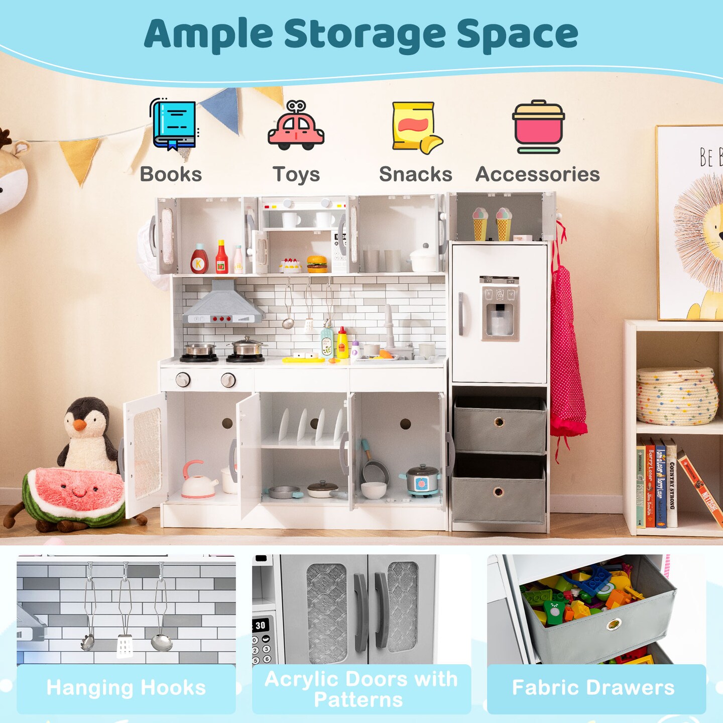 Wooden Pink Kitchen Playset with Lights & Sounds for Kids Ages 3+
