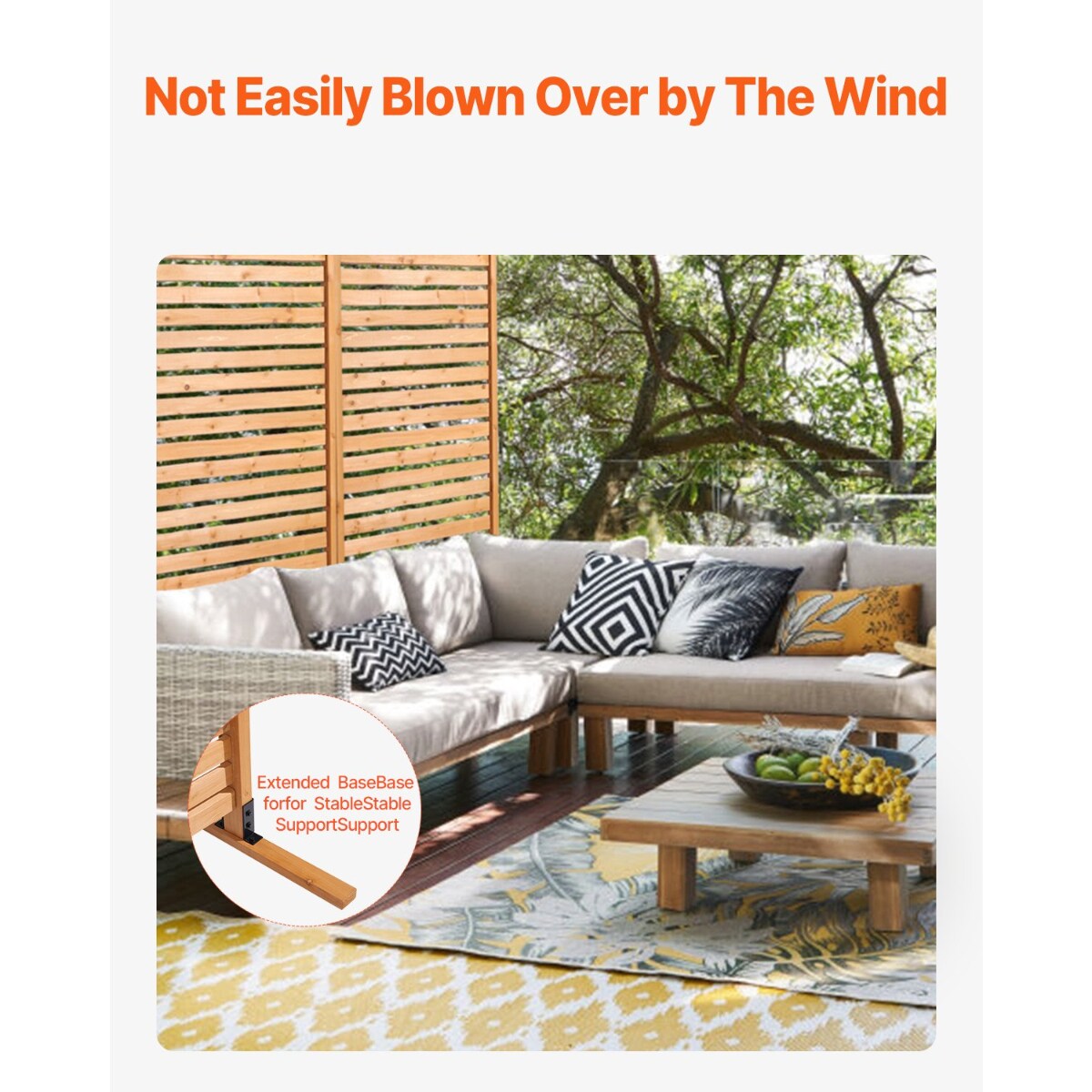 Wooden Privacy Screen, Freestanding Outdoor Divider for Patio & Garden