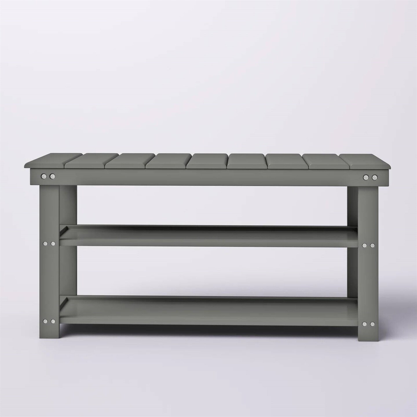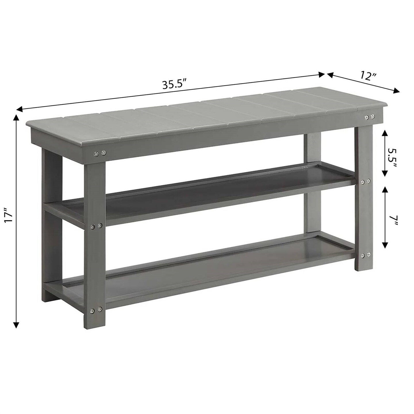 Wooden Shoe Rack Bench with Two Storage Shelves and 2-Seater Design for Entryway or Hallway