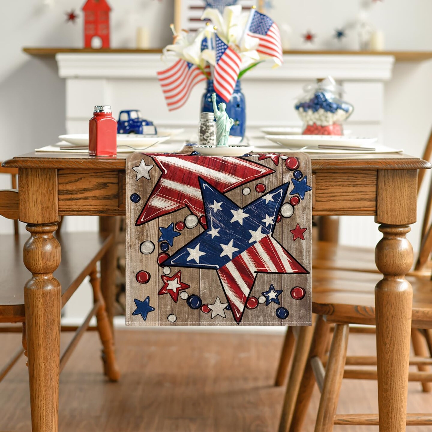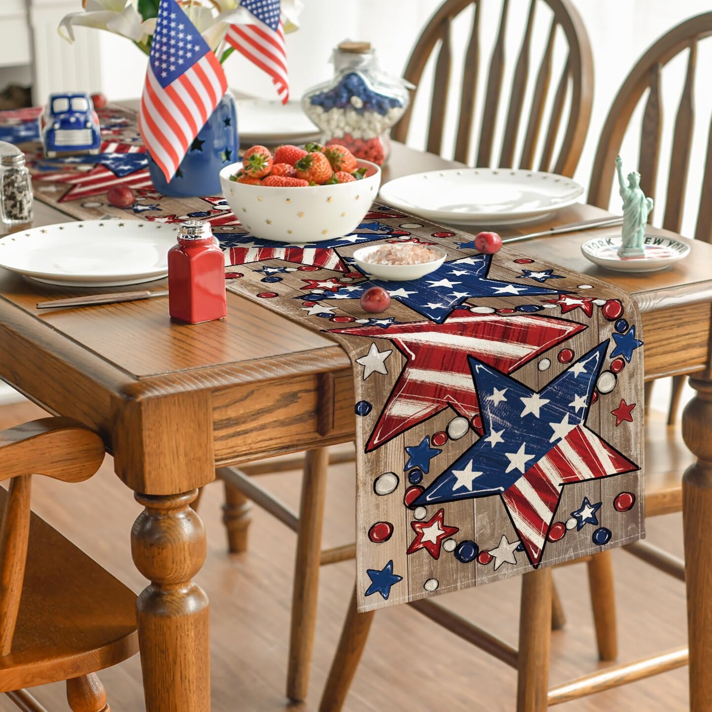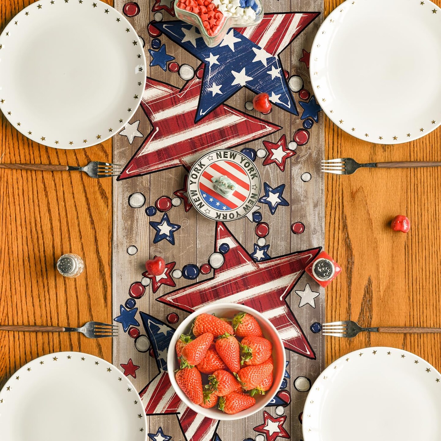 Wooden Star Beads Patriotic Table Runner – 4th of July & Memorial Day Kitchen and Dining Table Decoration, 13×120 Inches