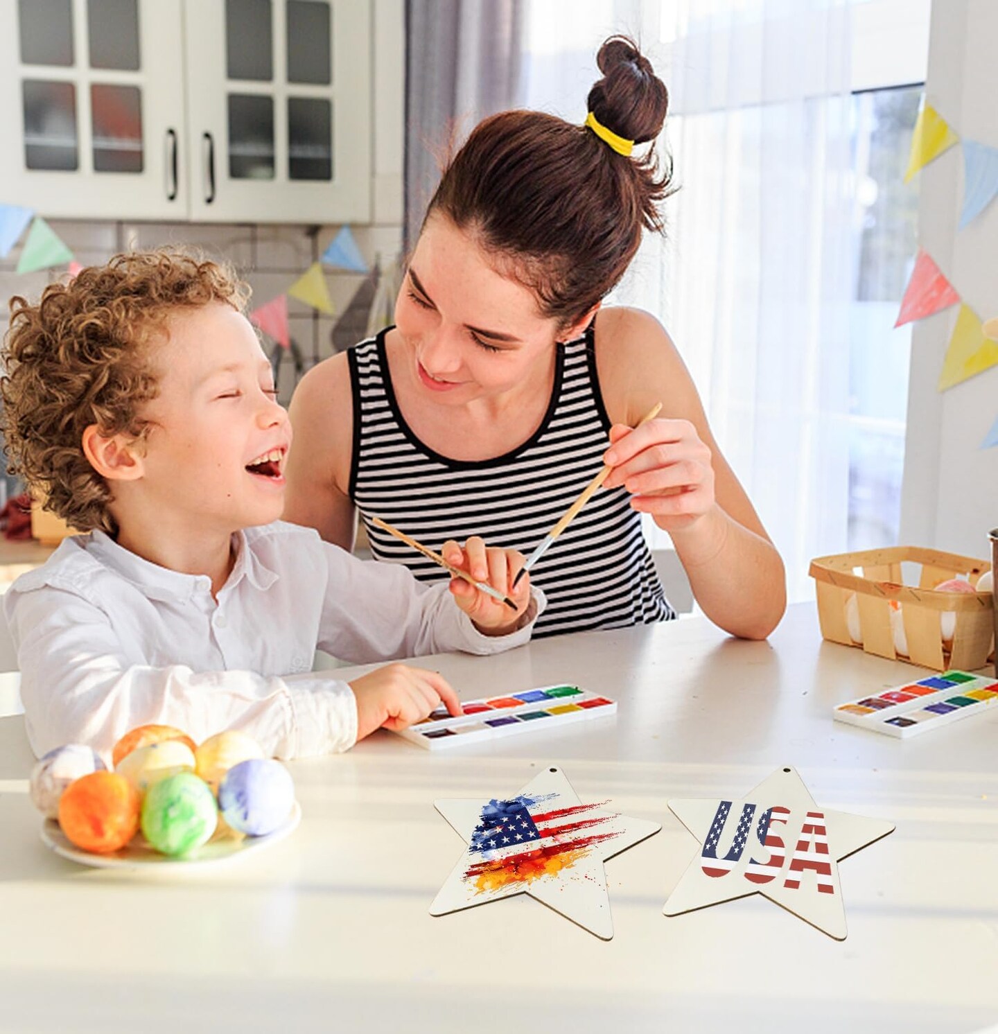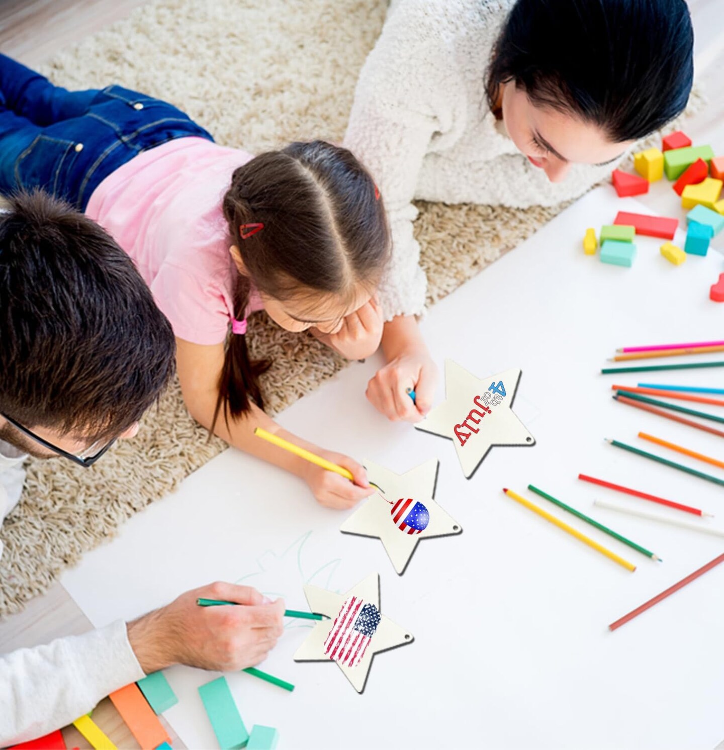 Wooden Stars for Crafts - Wood Stars for 4th of July Unfinished Wooden Ornaments