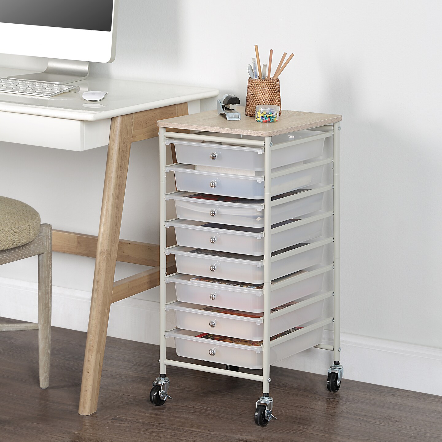 Wooden Top Compact Rolling Storage 8 Drawers Organizer Mobile Utility Cart