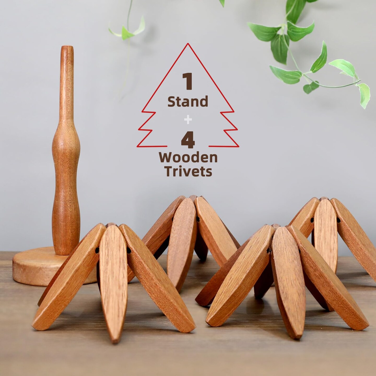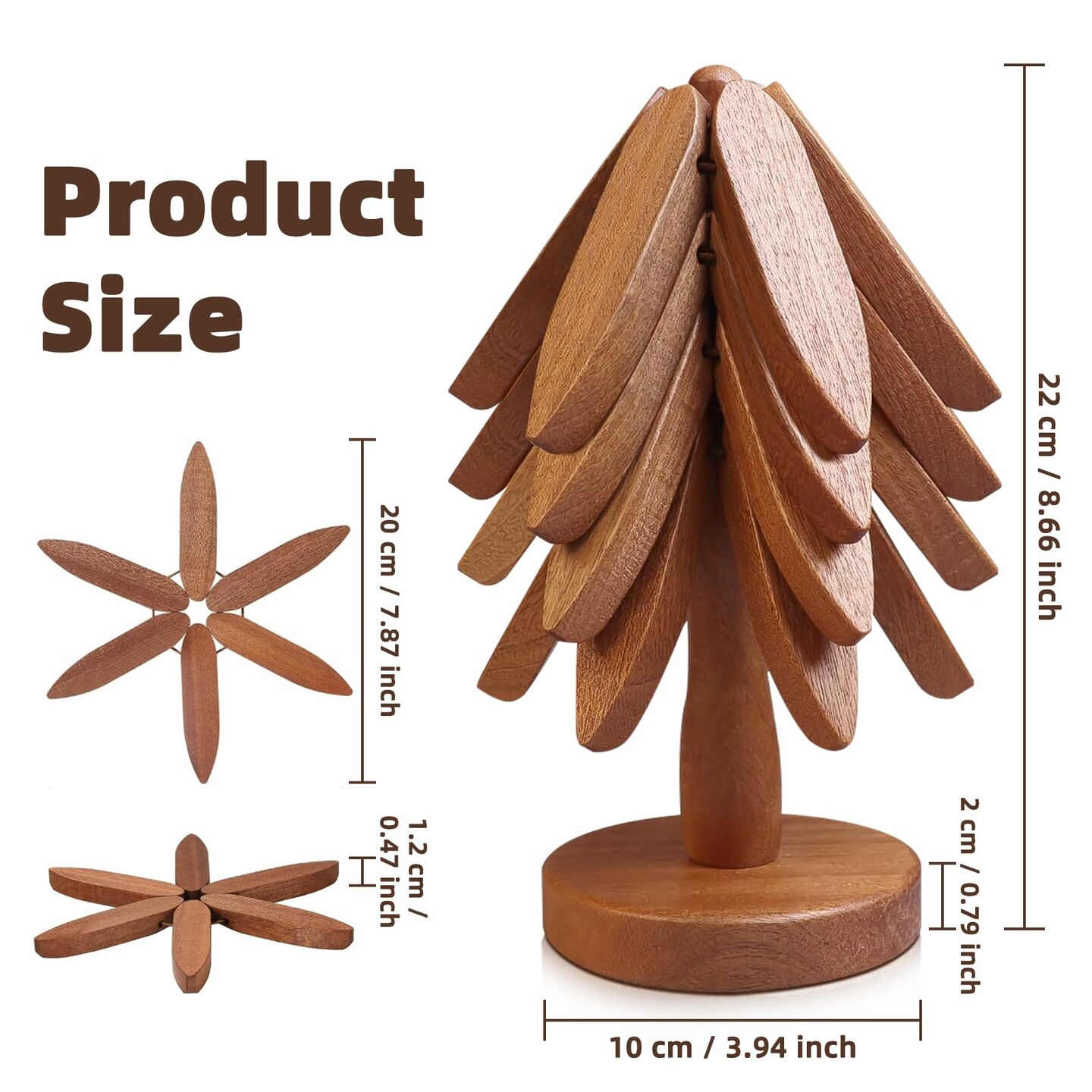 Wooden Trivets for Hot Dishes,Natural Foldable Kitchen Wooden Trivets for Hot Dishes - Tree Shape Trivet Set for Kitchen Counter Table Home Essentials