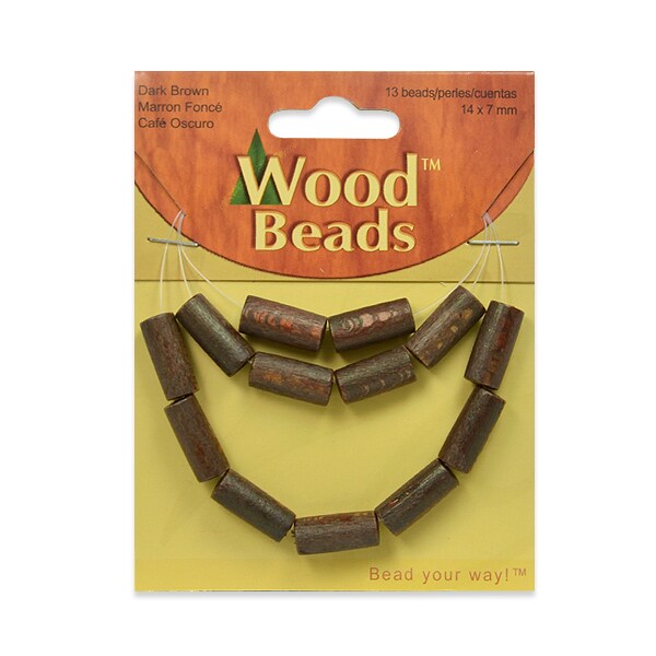 Wooden Tube Beads - Dark Brown- 14x7mm - 13 pcs.