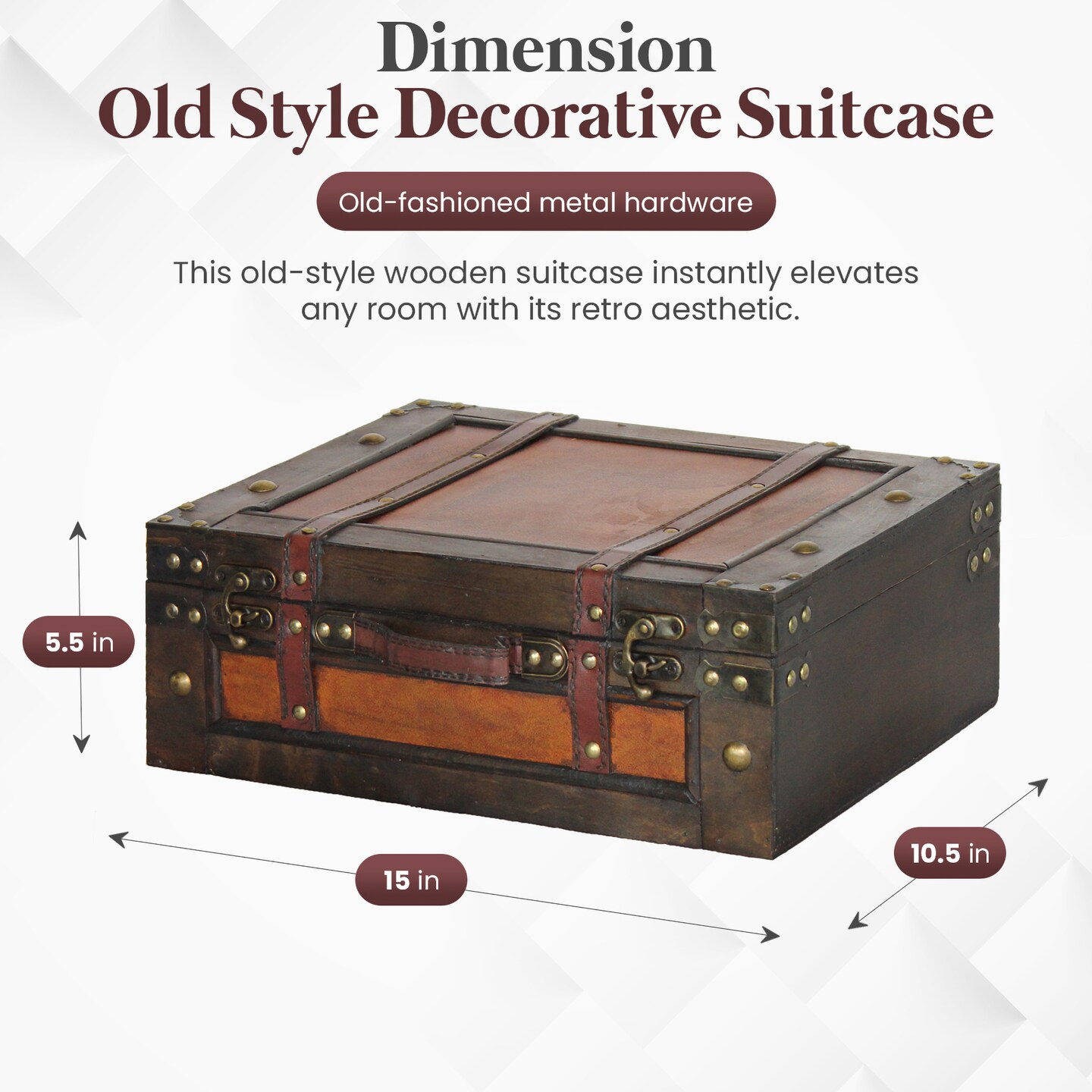 Wooden Vintage Luggage Trunks - Antique Carry-on Suitcase Storage Box with Hinged Lids, Old-Fashioned Decorative Box