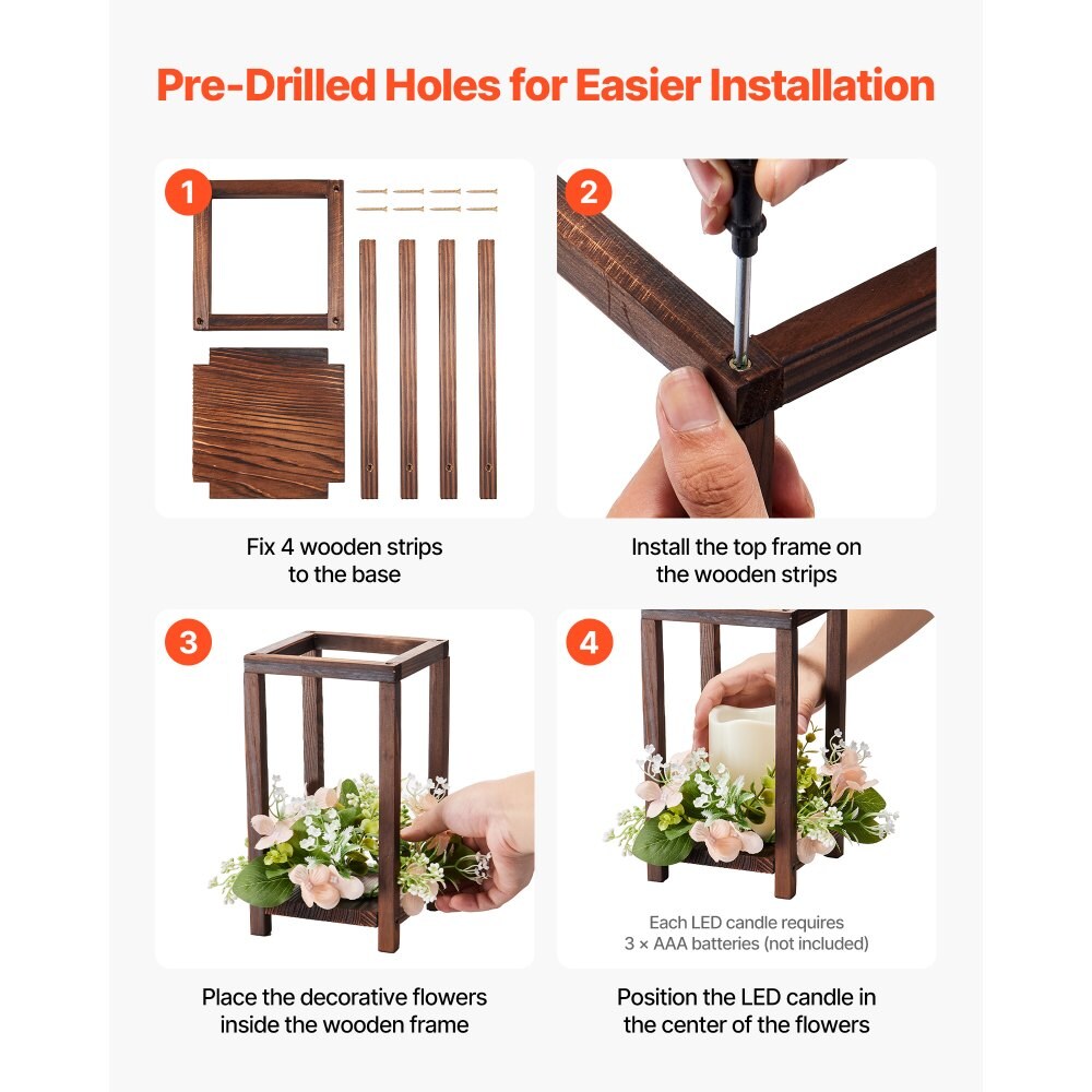 Wooden Wedding Lantern Centerpiece with LED Candle, Flower Wreath for Table Decor