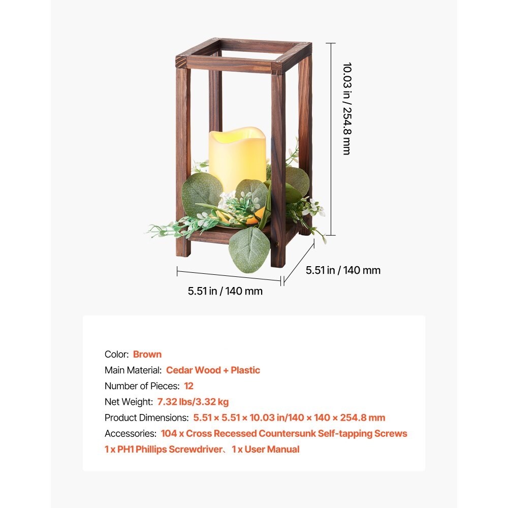 Wooden Wedding Lantern Centerpiece with LED Candle, Flower Wreath for Table Decor