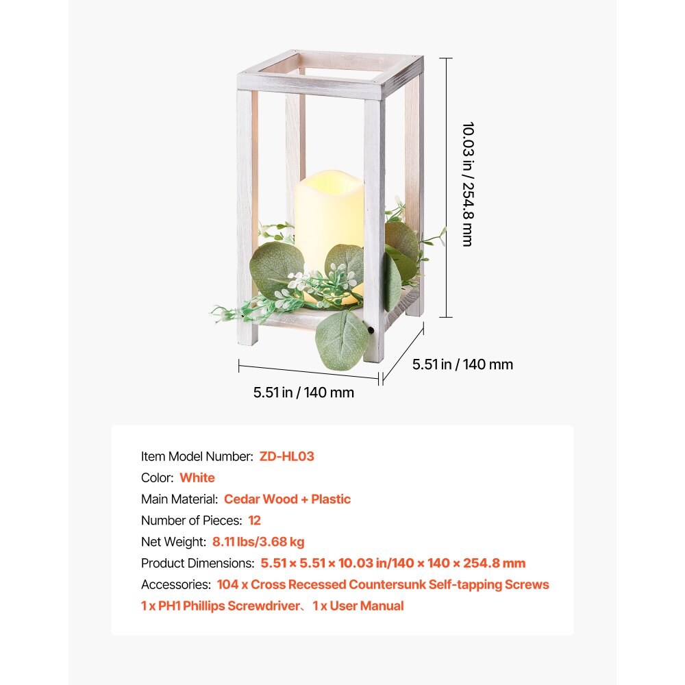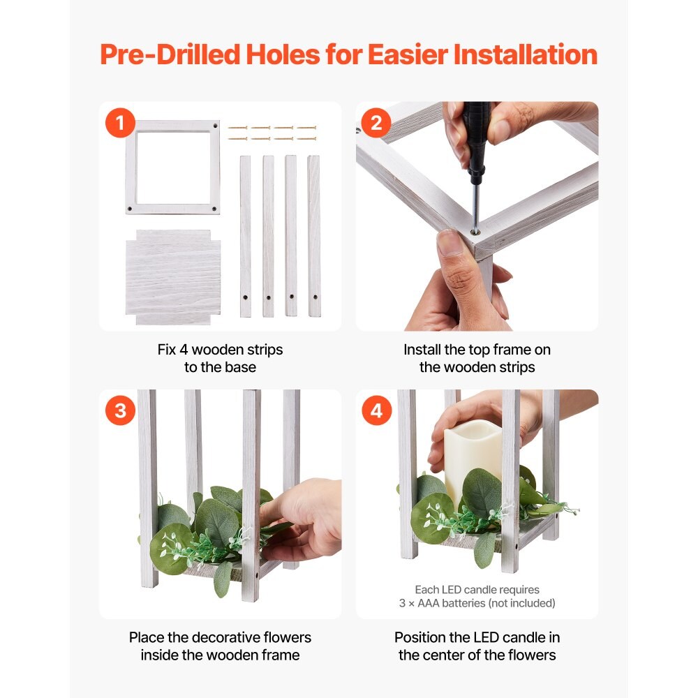 Wooden Wedding Lantern Centerpiece with LED Candle, Flower Wreath for Table Decor