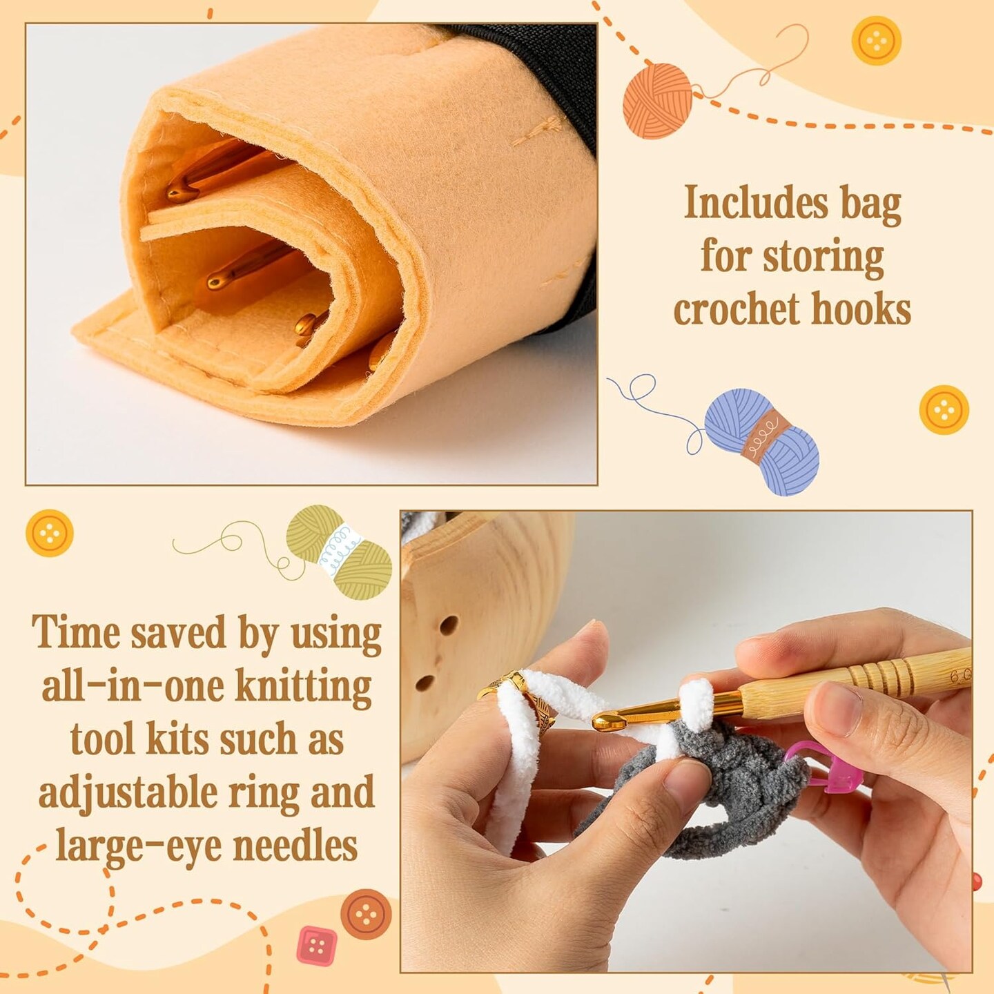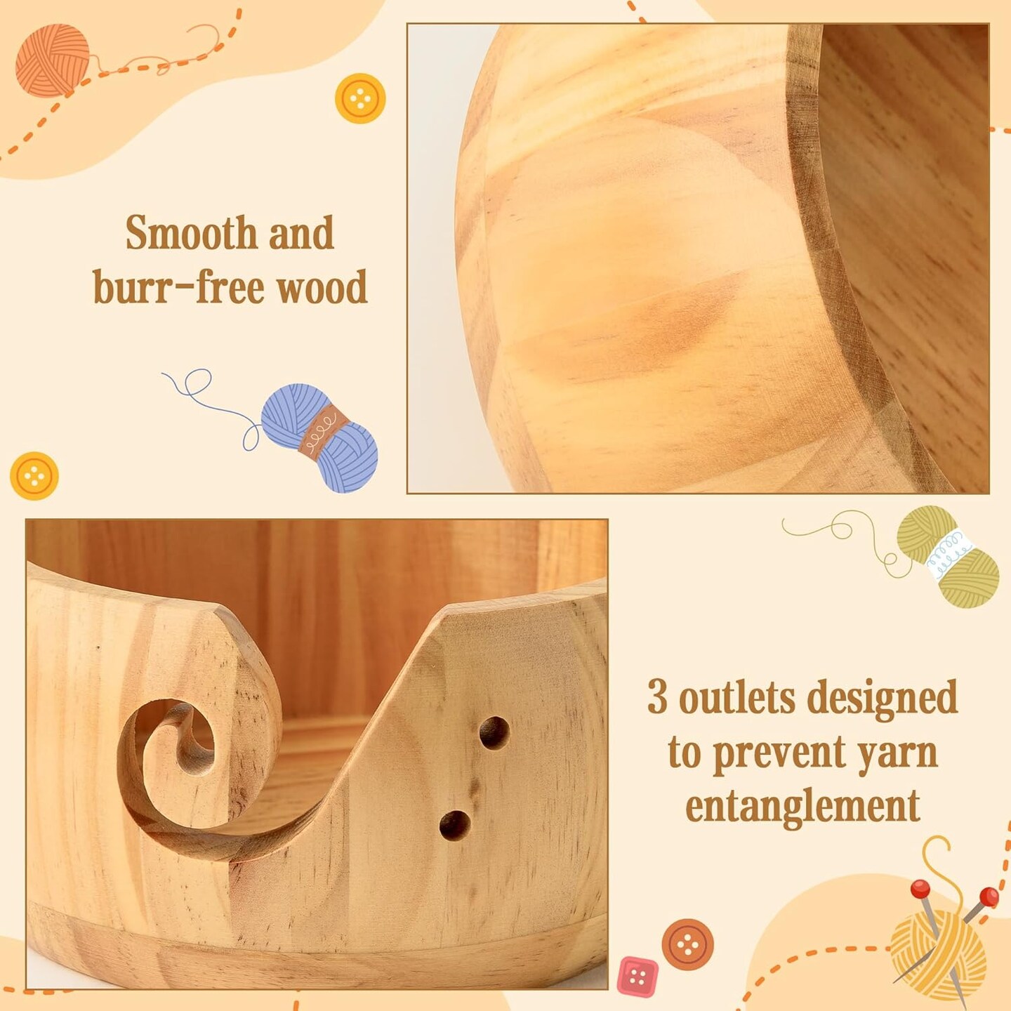 Wooden Yarn Bowl Holder Set(Natural)