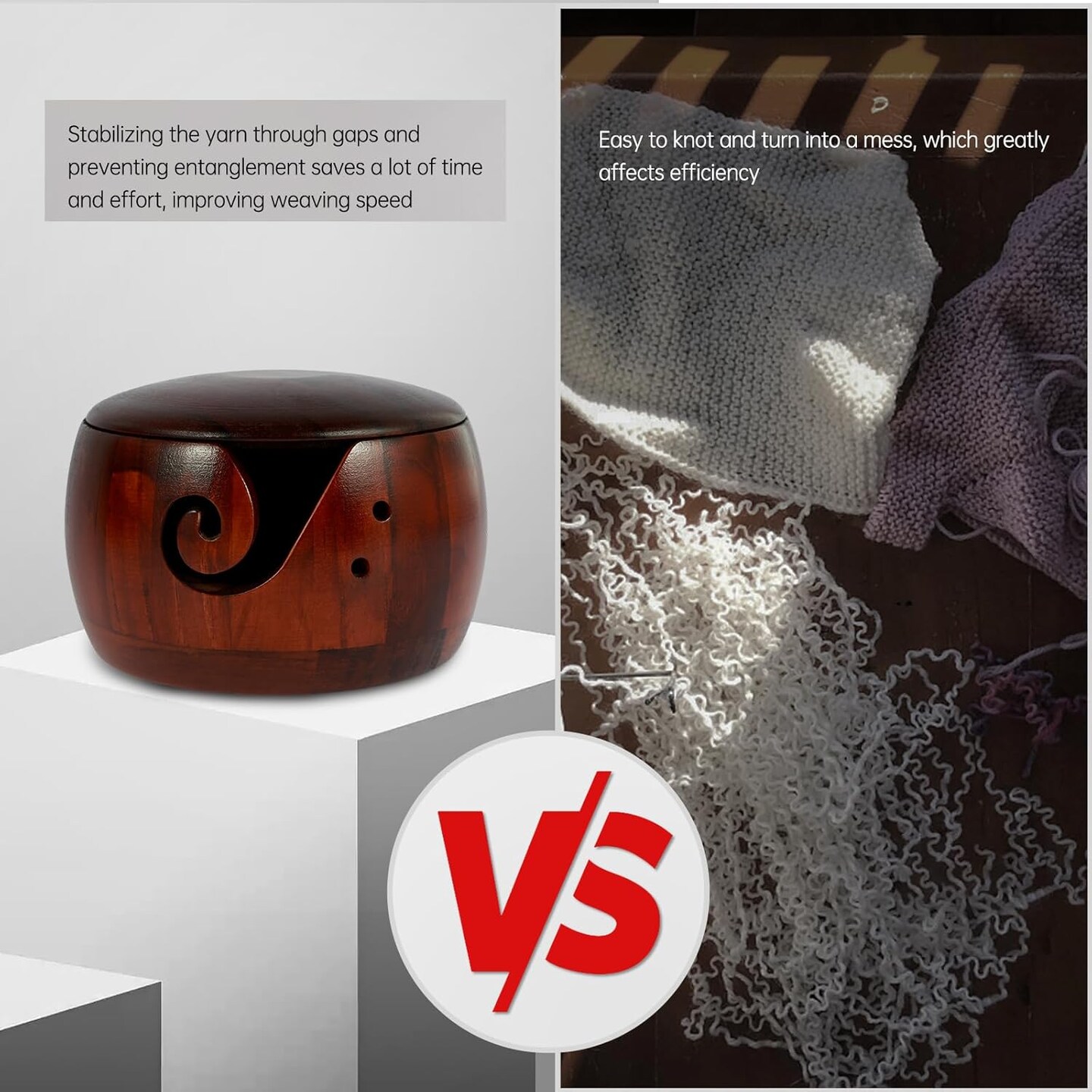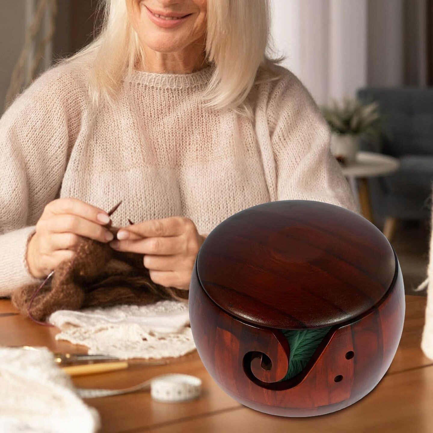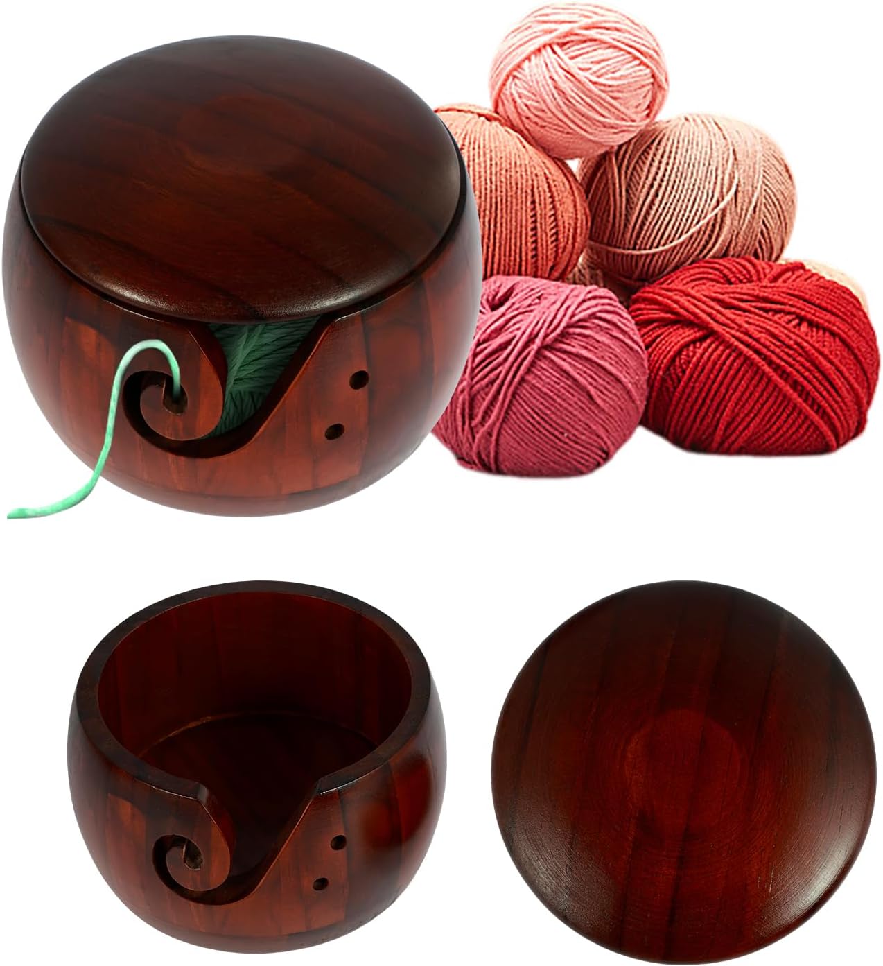 Wooden Yarn Bowl with Lid