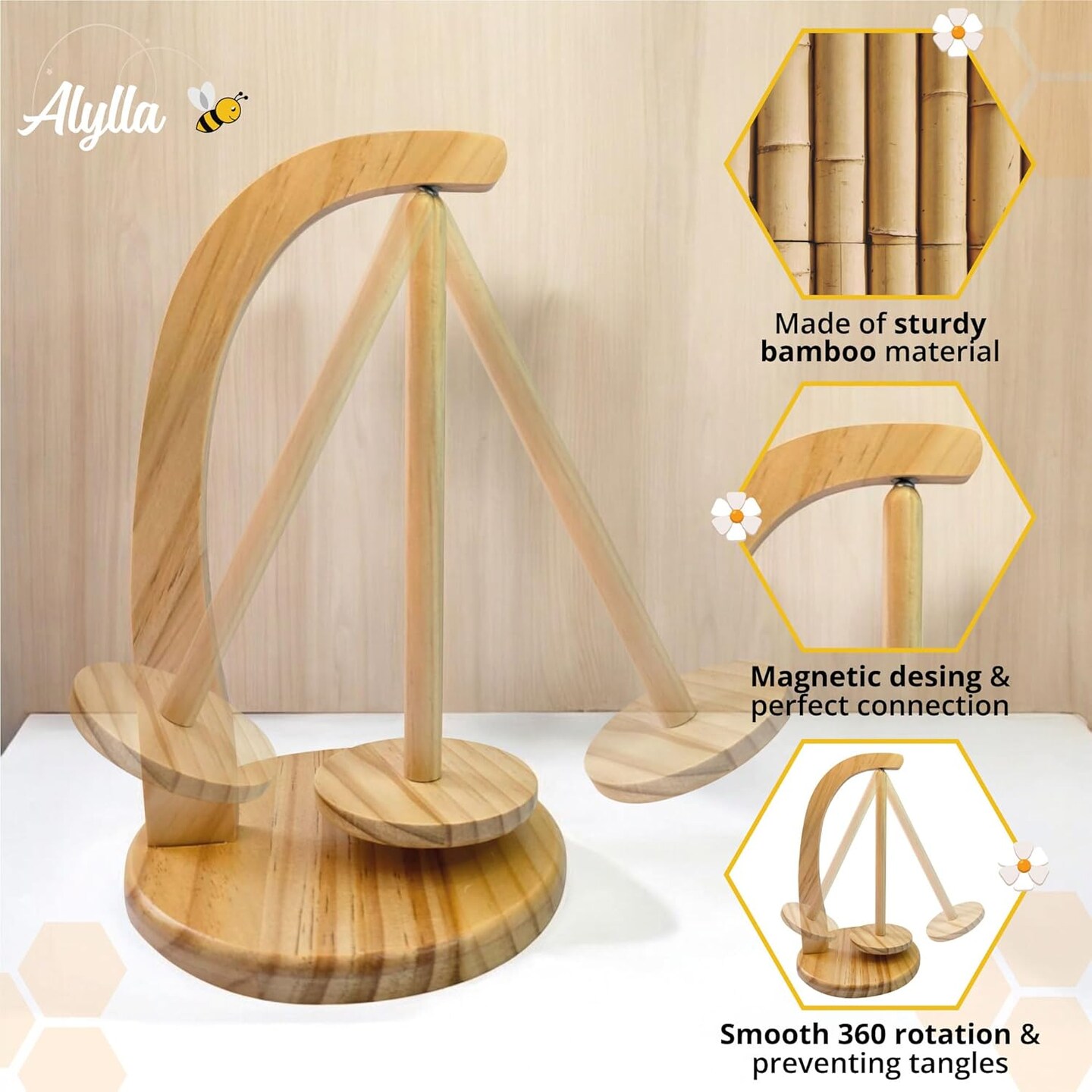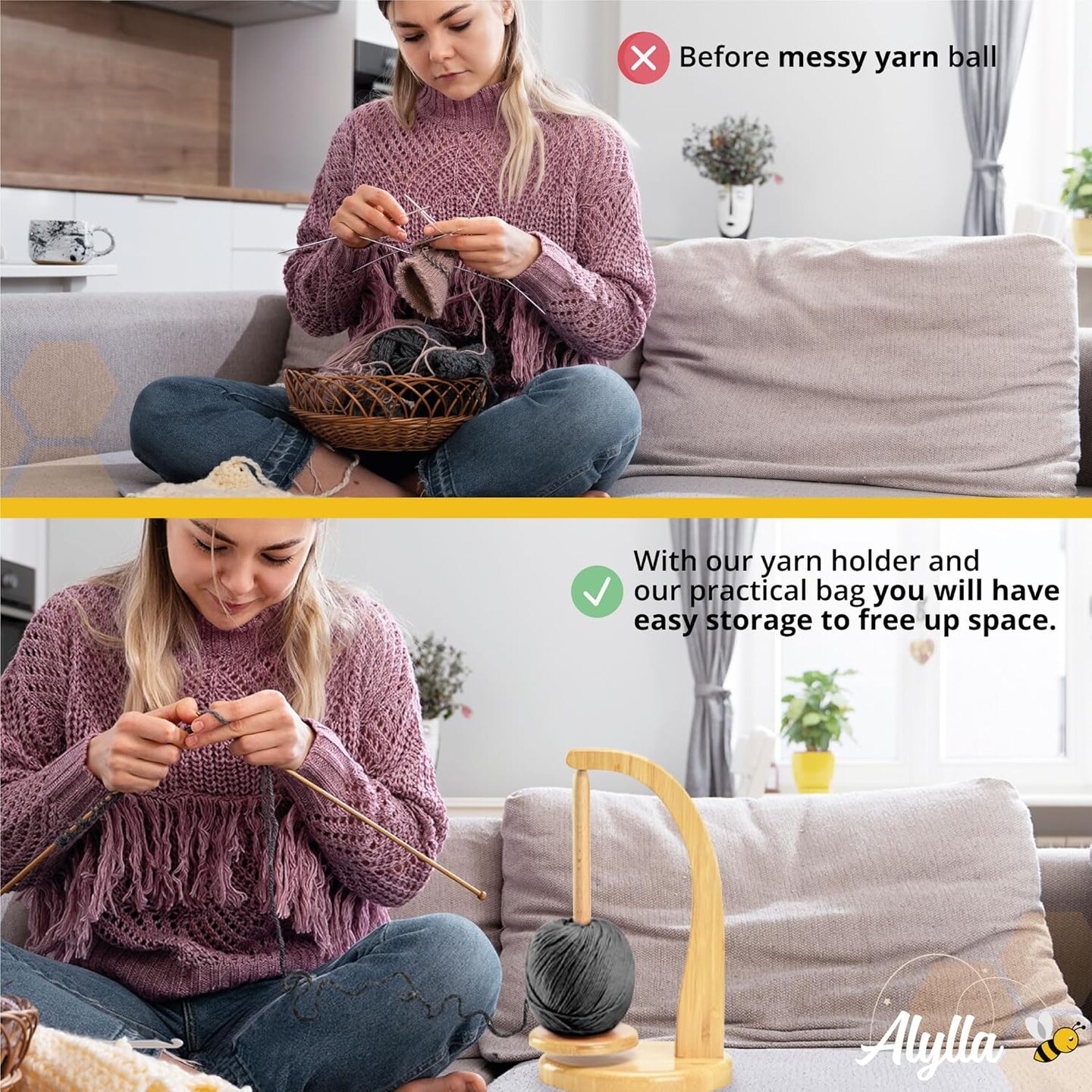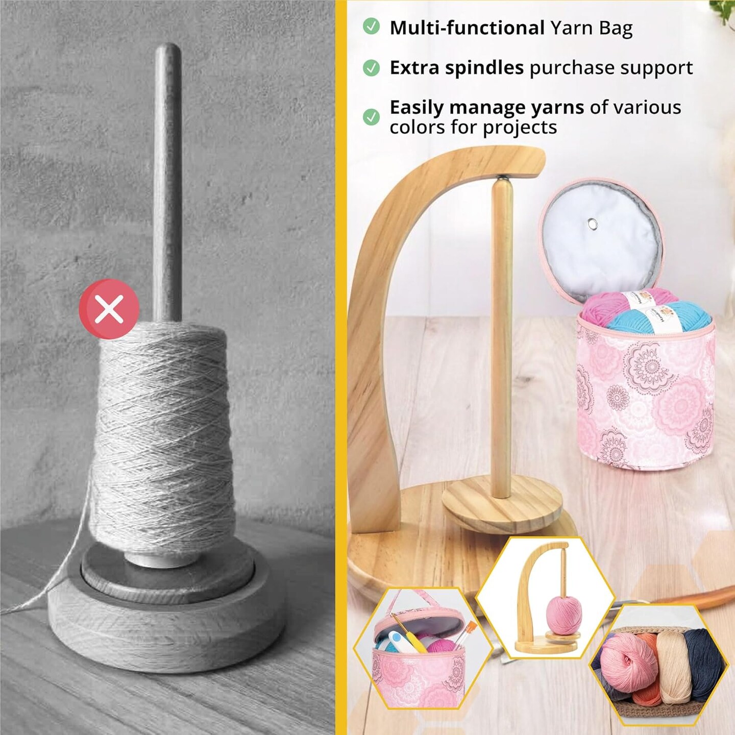 Wooden Yarn Holder and Spinner, Crochet Organizer for Balls, Skeins and Spindles